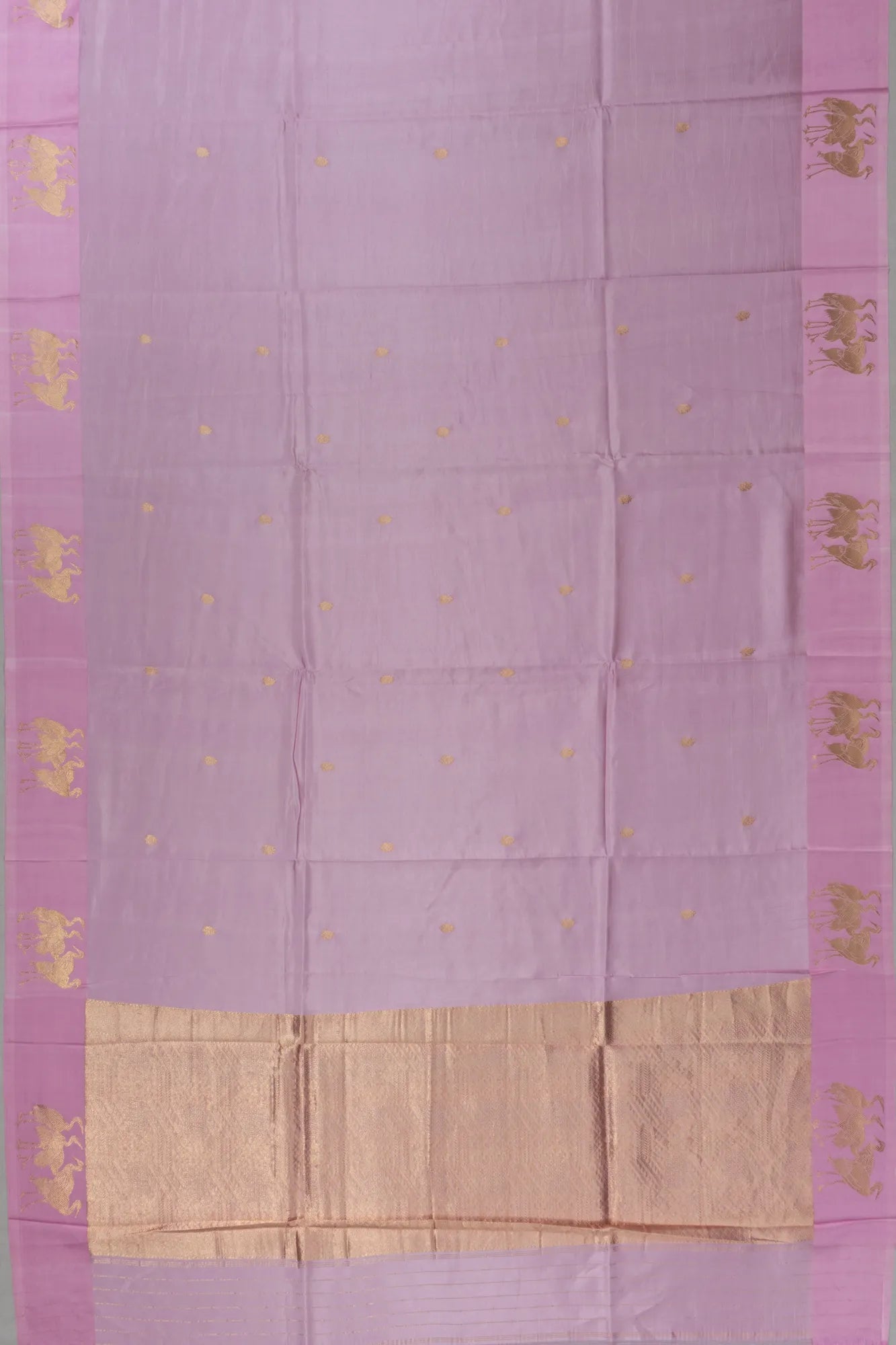 The body is adorned with gold zari floral buttas, exuding a graceful charm that captures the essence of heritage craftsmanship