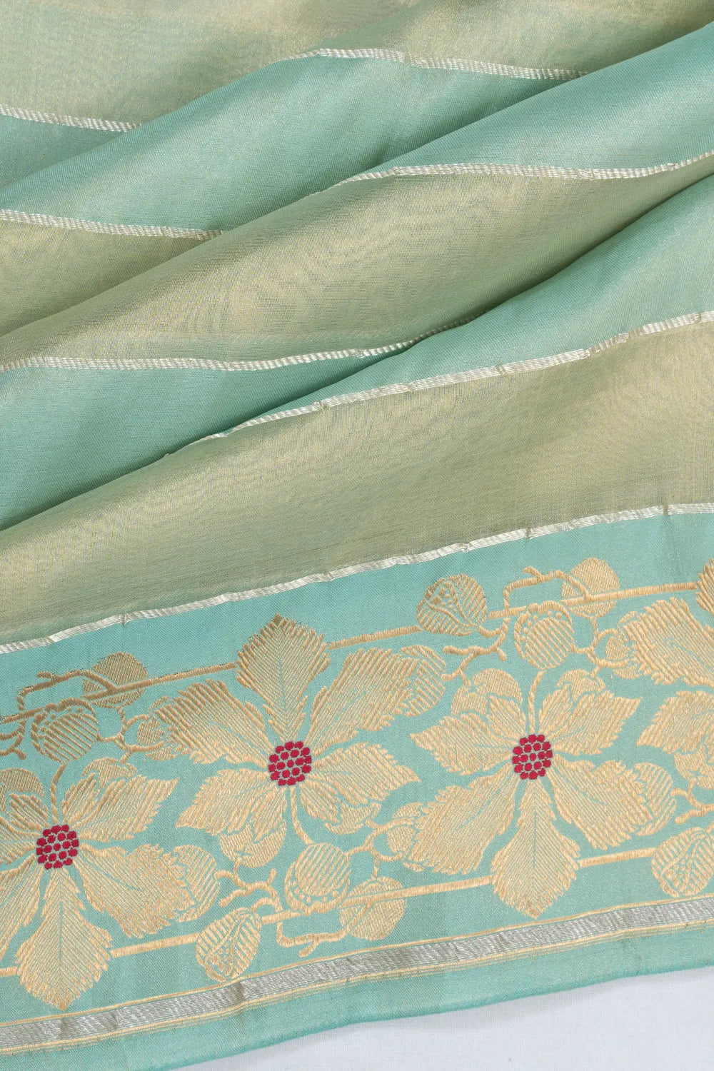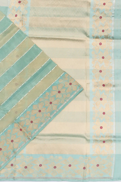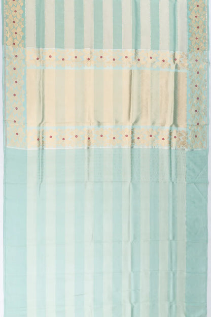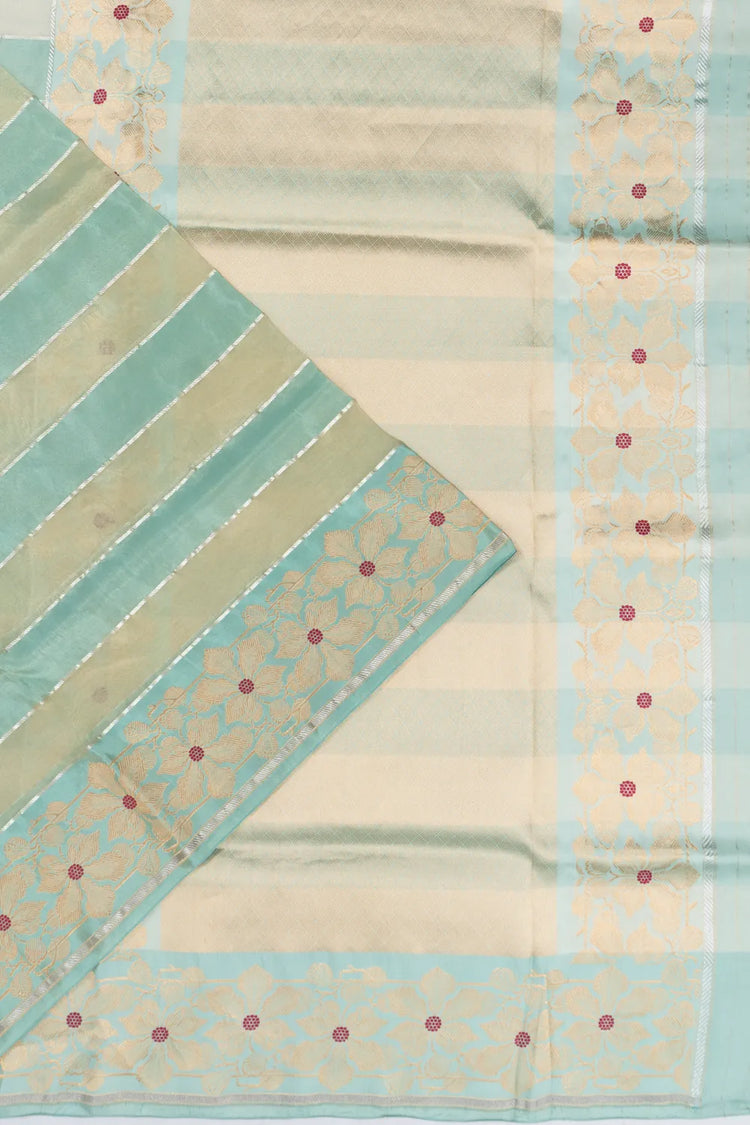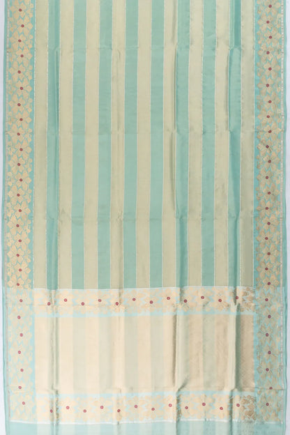 Banarasi Kora Organza Tissue Horizontal Lines Sea Green Saree