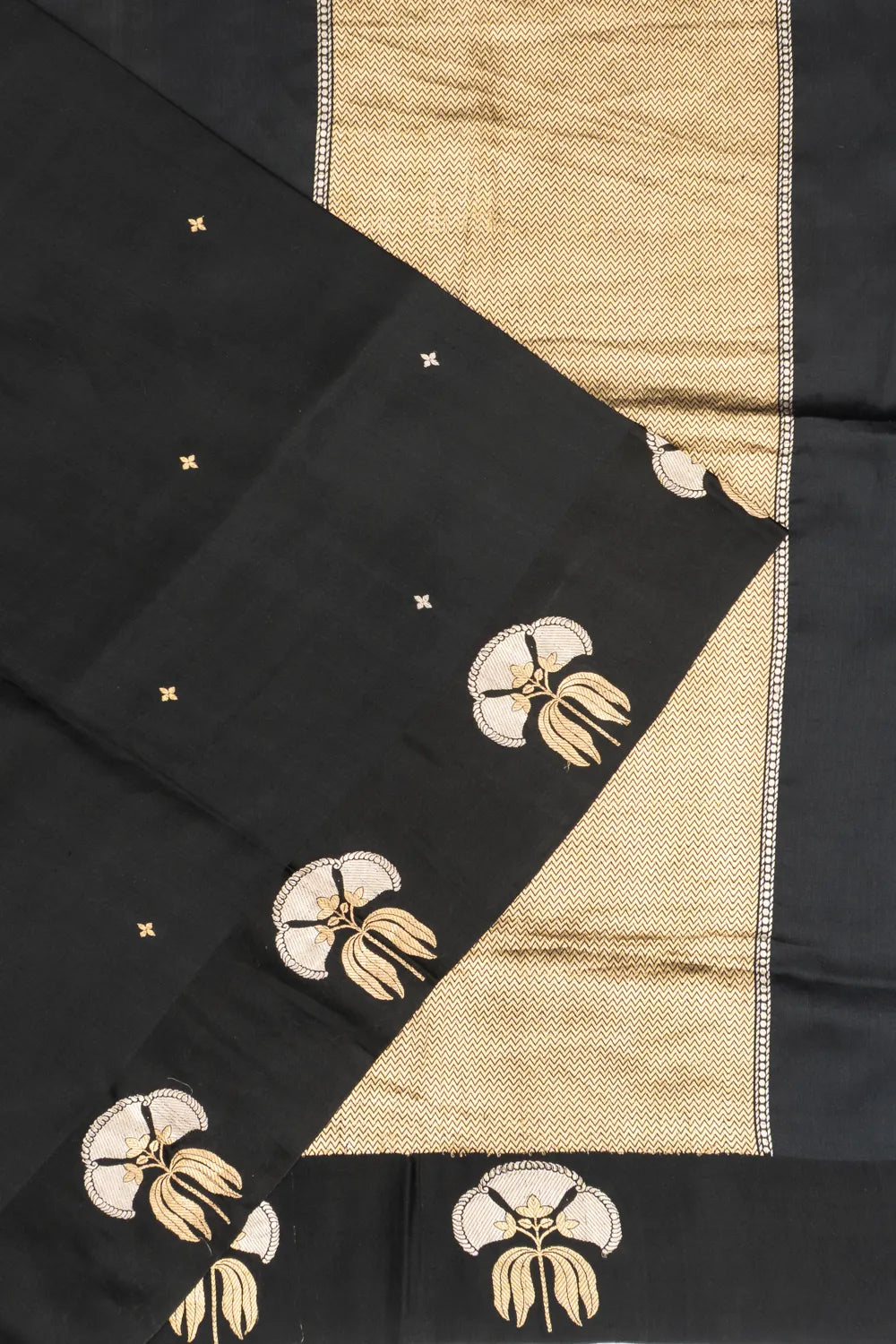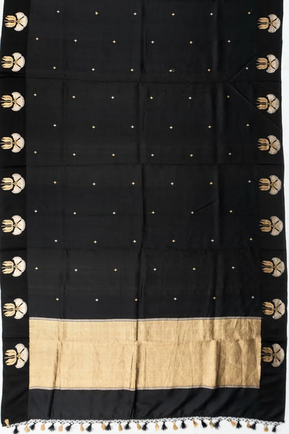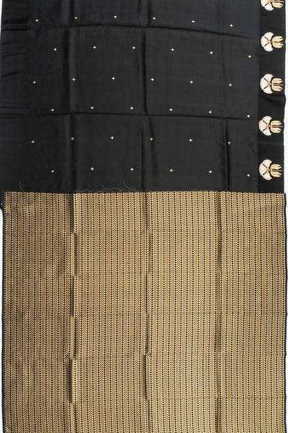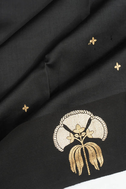 Designed with classic gold zari floral butta, this black Banarasi Katan silk saree radiates opulence and heritage charm.