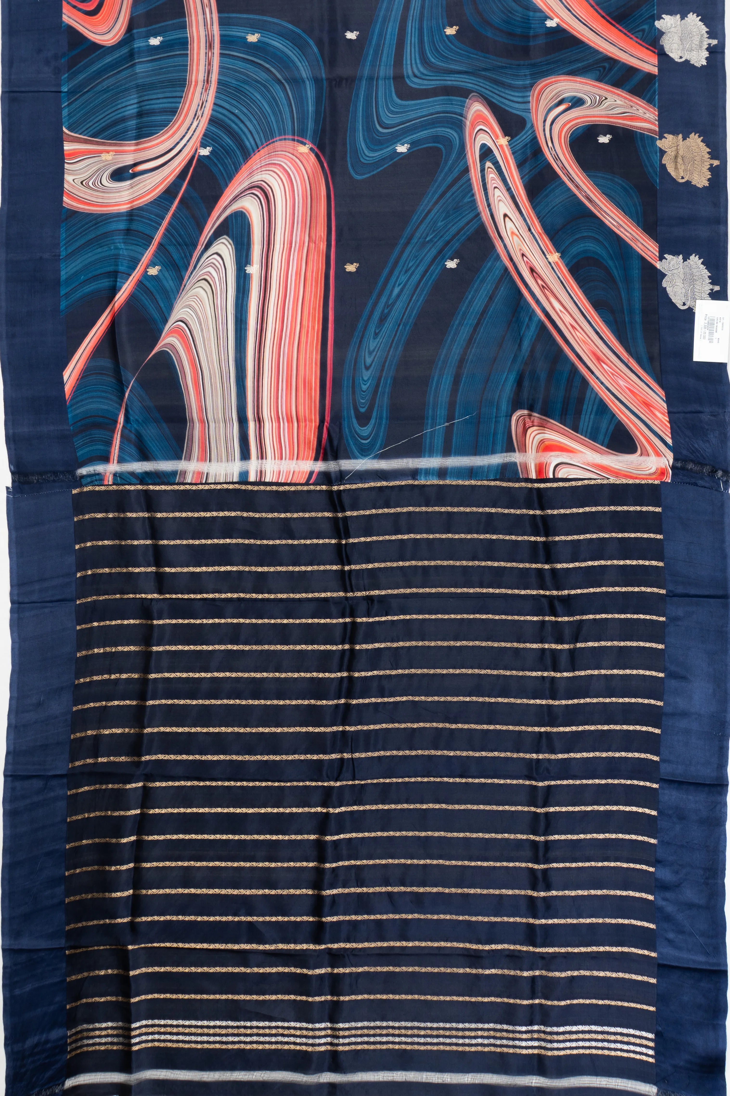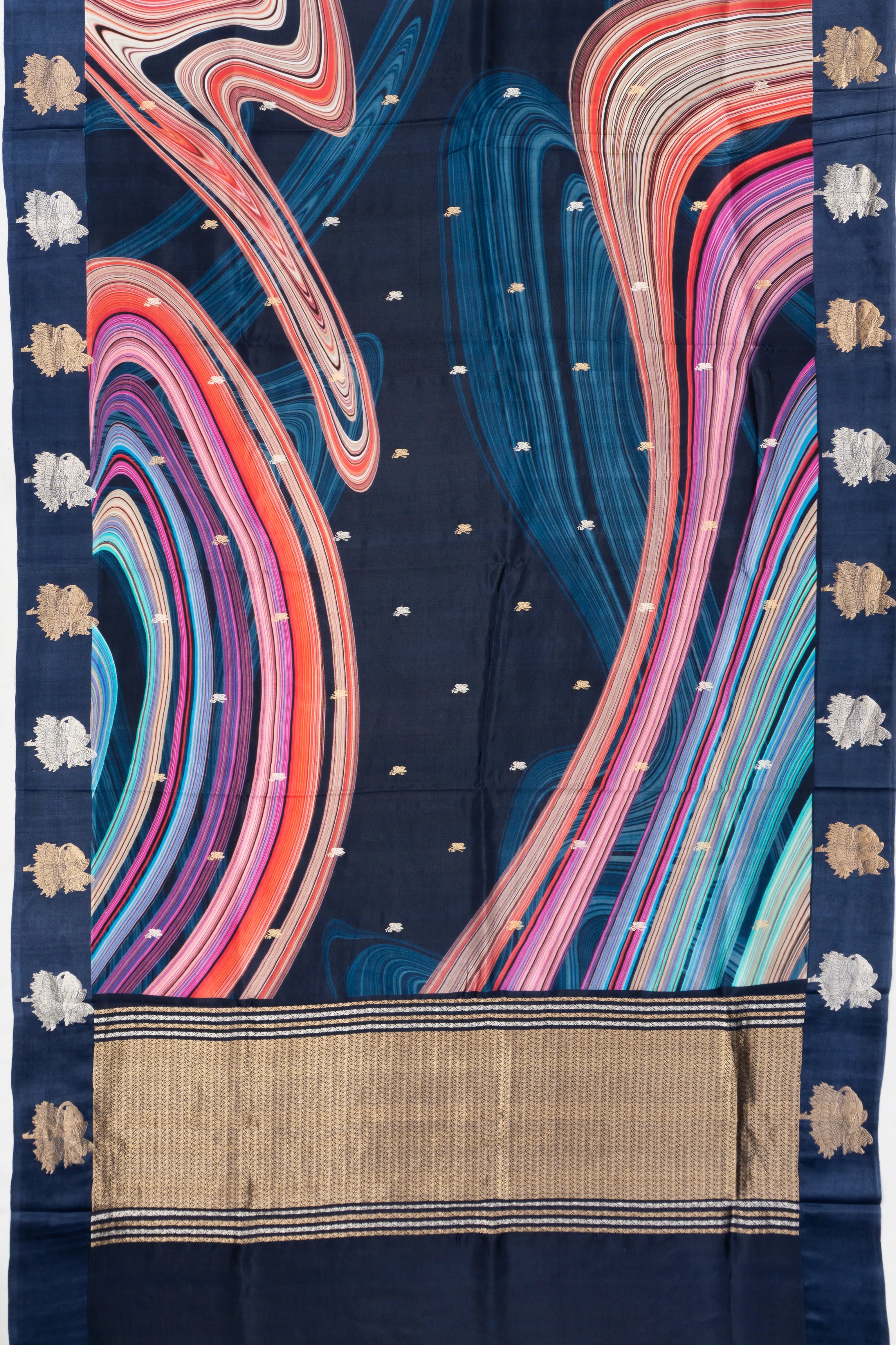 Banarasi Katan Silk Printed And Butta Dark Blue Saree