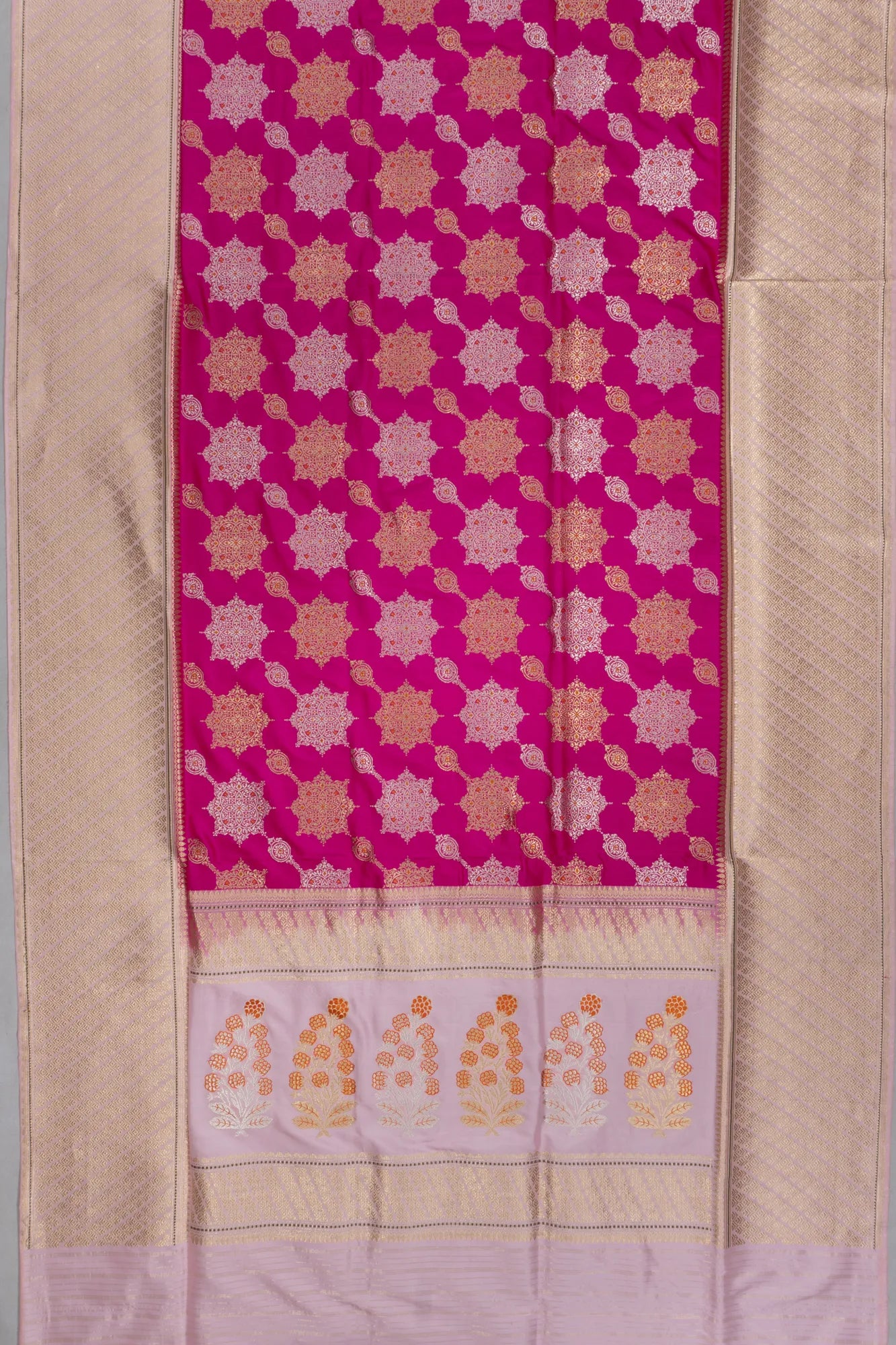 Banarasi Silk Kadwa Jaal Brocade Rani Pink Saree