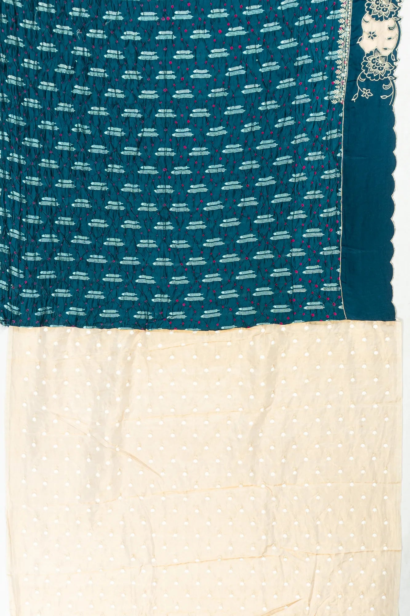 Banarasi Silk Bandhani Zig Zag Lines Blue Saree With Scallop Border