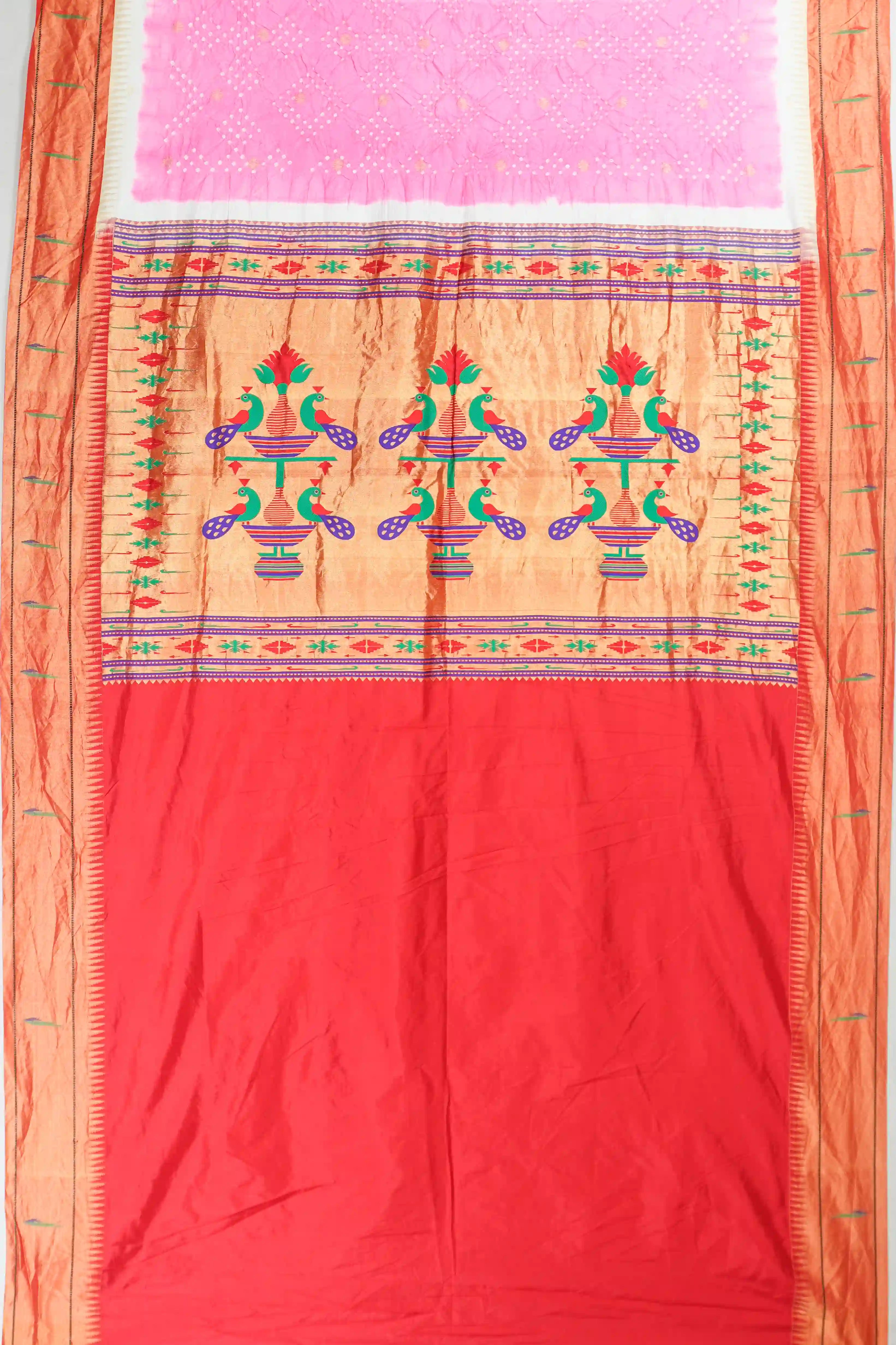 Muniya Silk Bandhani Pink Saree With Paithani Inspired Border