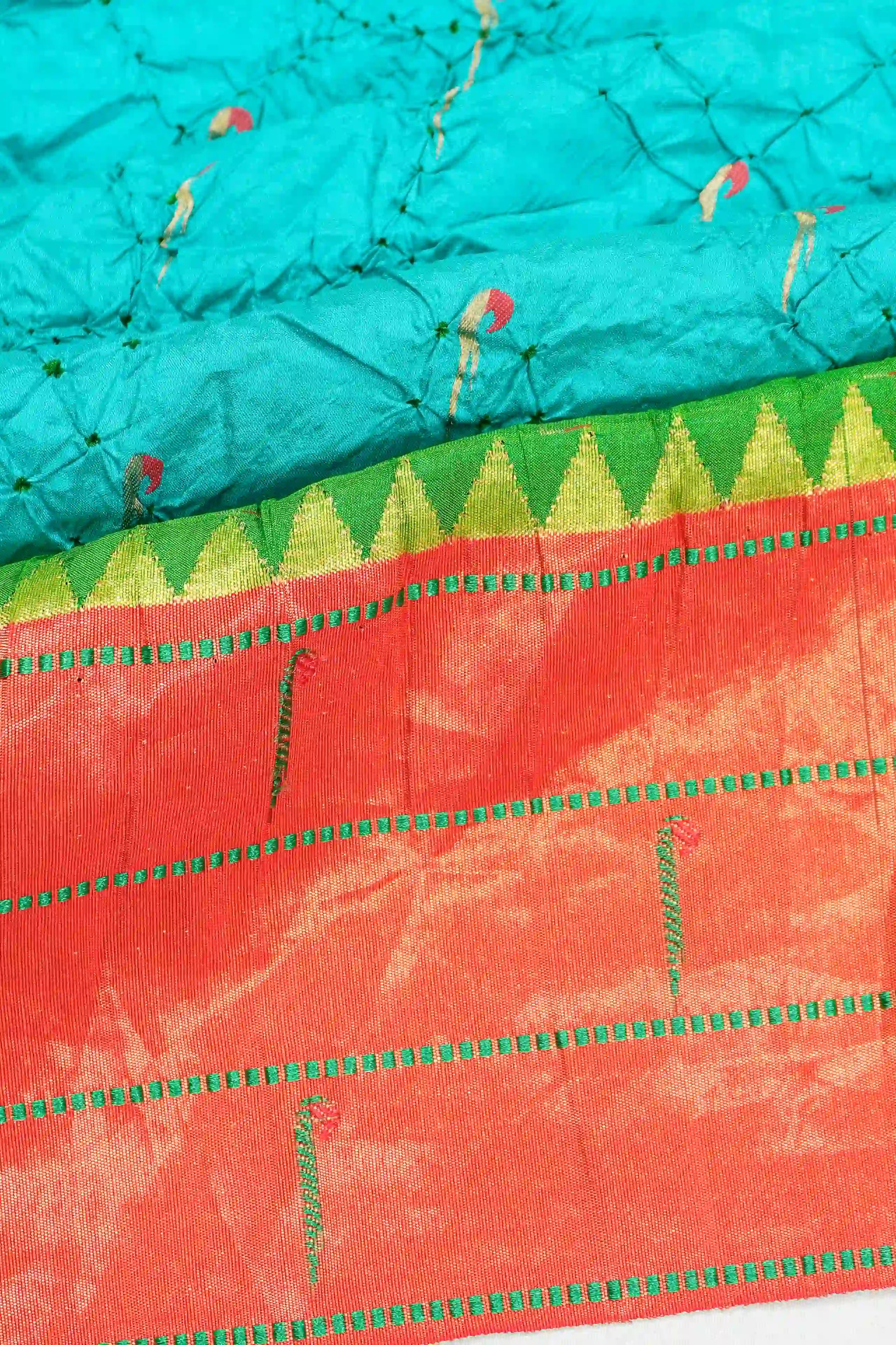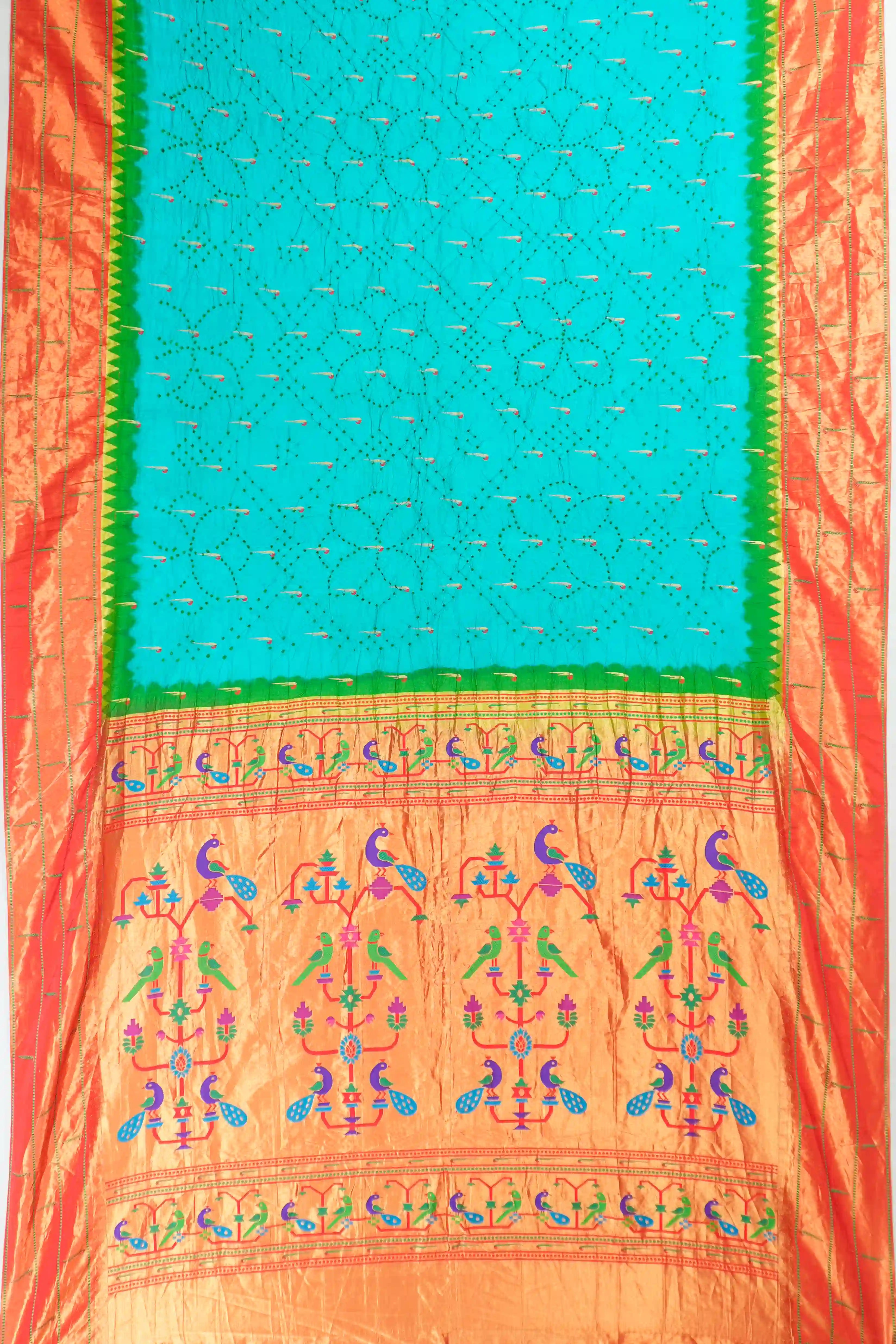 Muniya Silk Bandhani Sea Blue Saree with Paithani Inspired Border