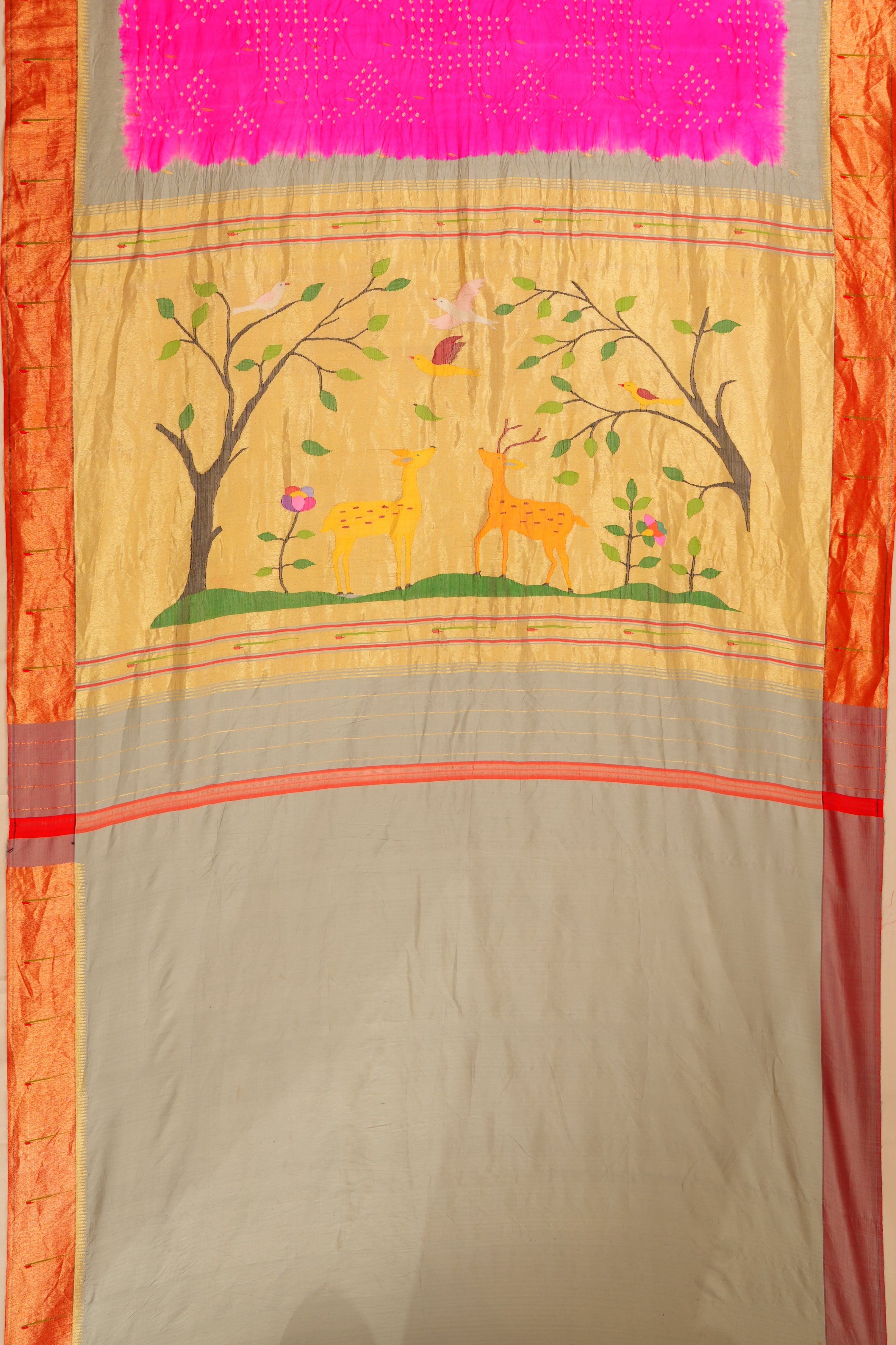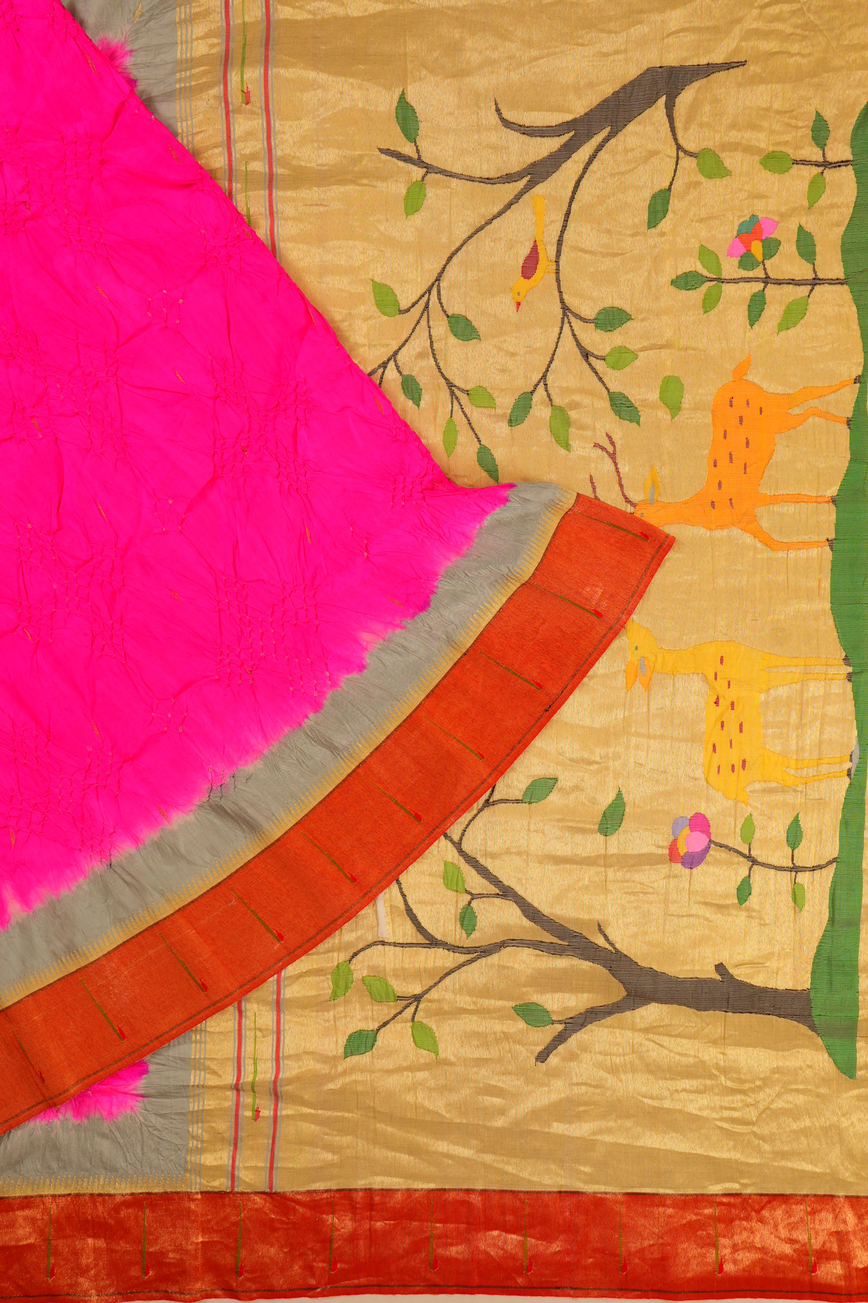 Paithani Silk Bandhani Rani Pink Saree With Single Muniya Border