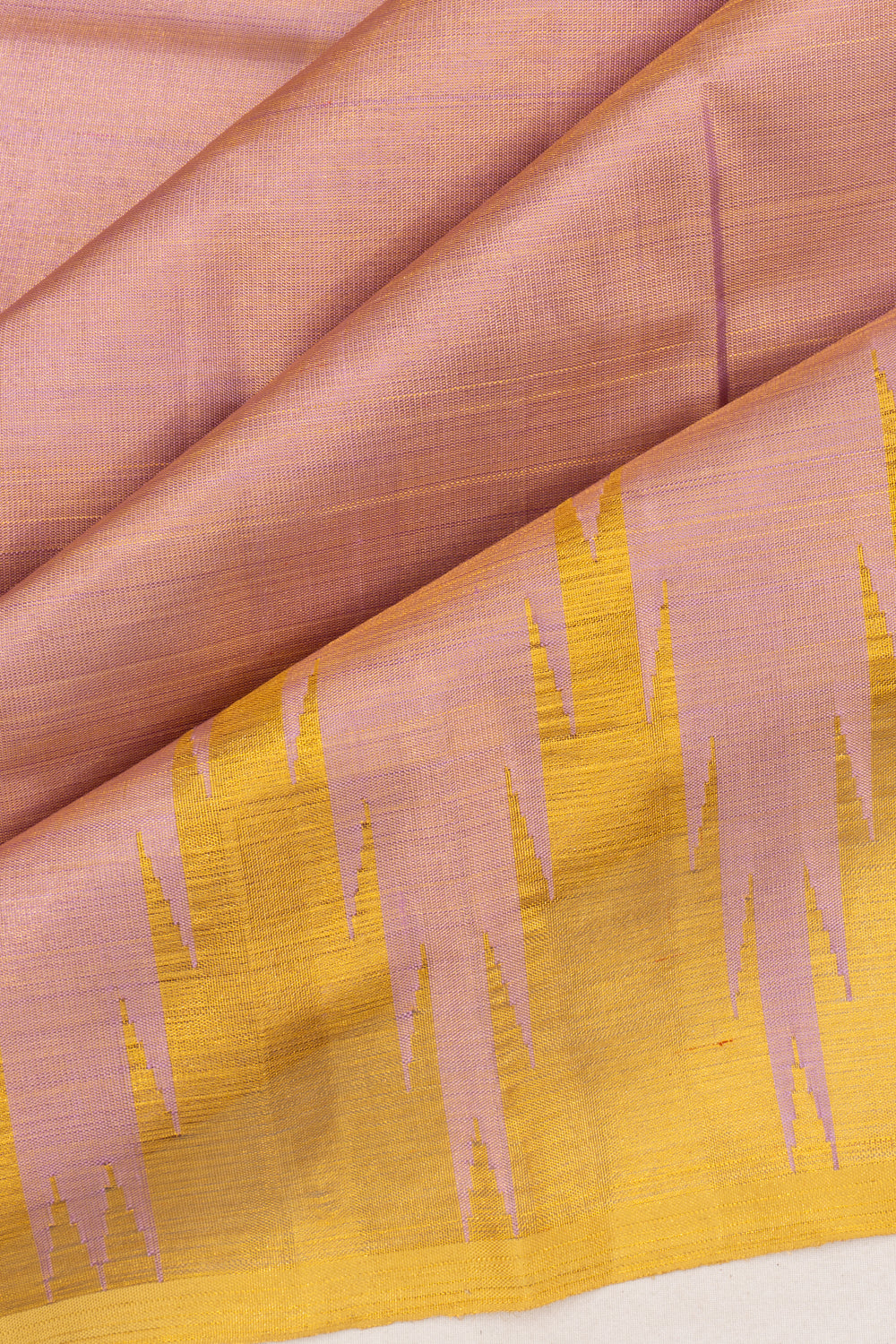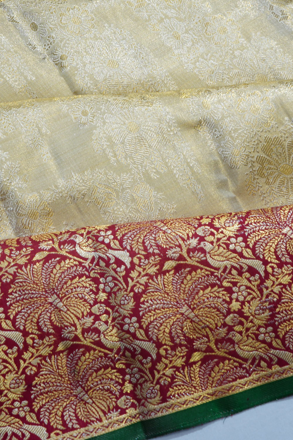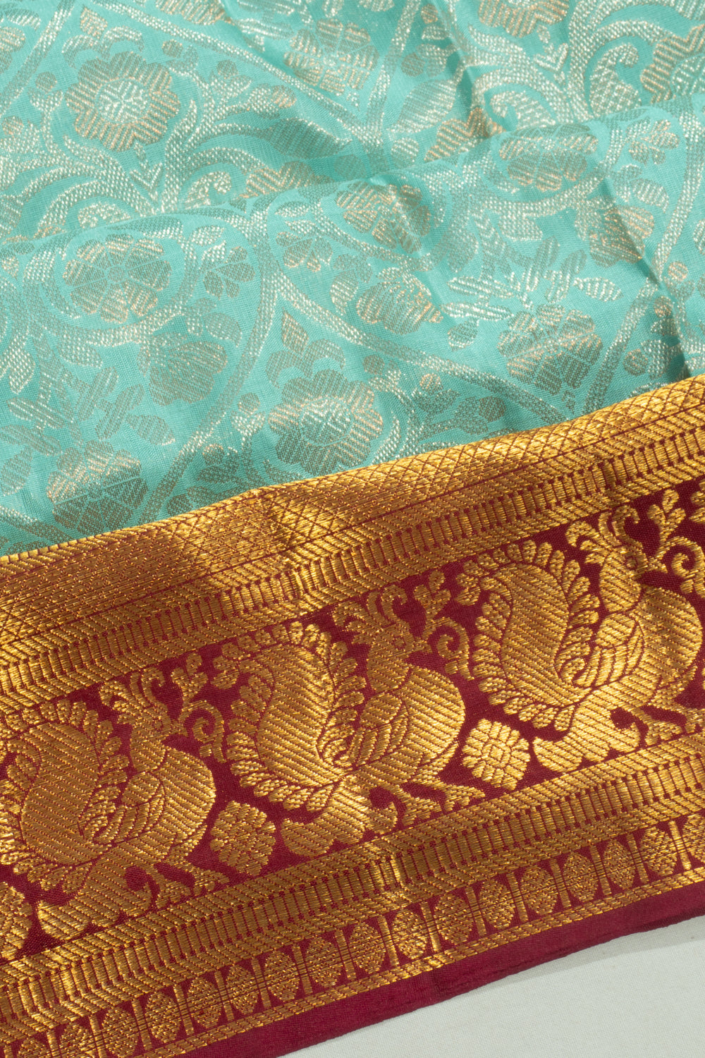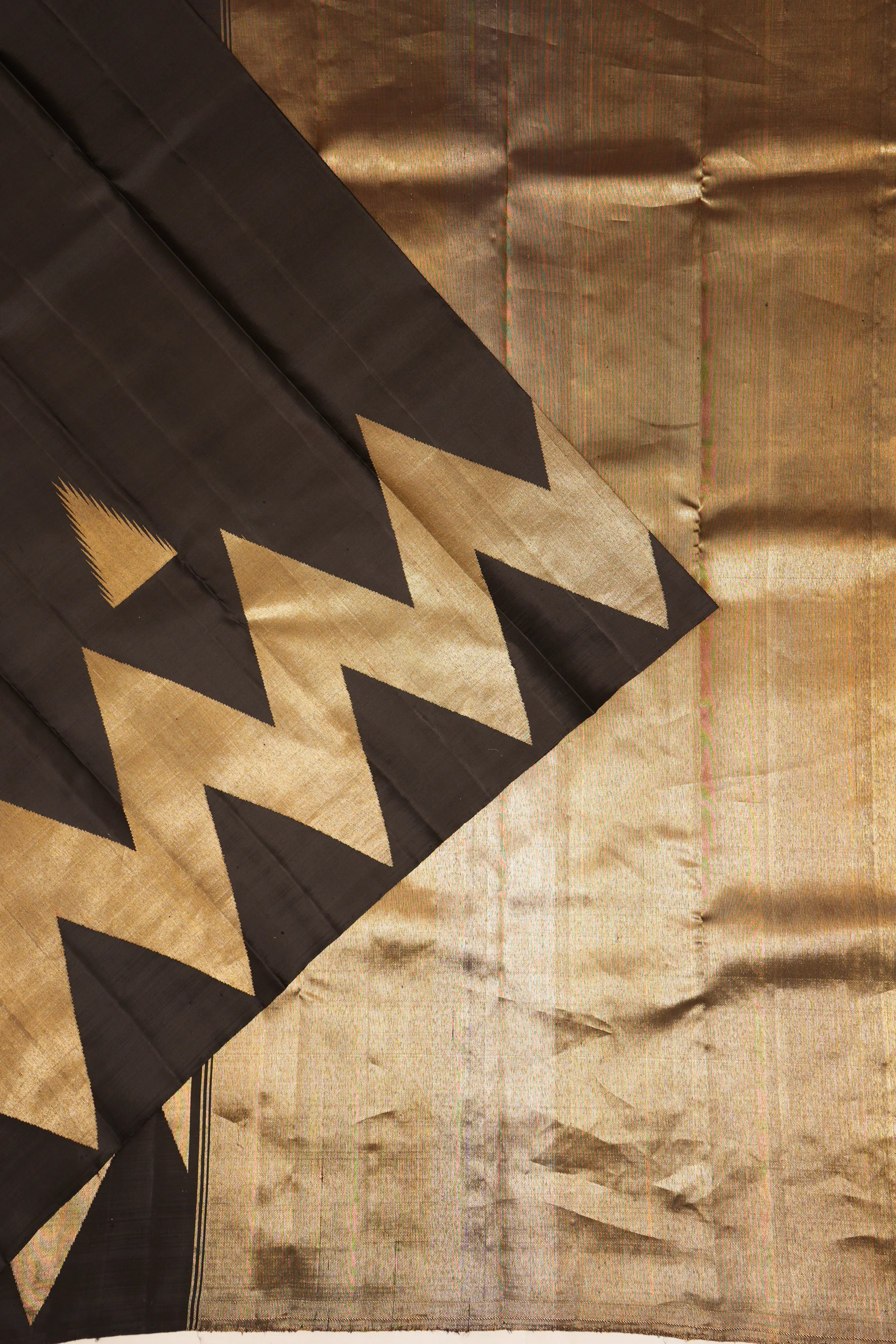 The most striking part of the kanchi pattu big border sarees is its pallu. Going over the shoulder, it is usually pleated or can even be openly draped to show off the exquisite design. The pallu usually has more detailing and is different from the body of the saree. A distinguishing feature of the Kanchipuram pallu is that it is interwoven with the body of the saree in a zig zag manner, known as Korvai border. This strengthens the lock and also displays a creative design.