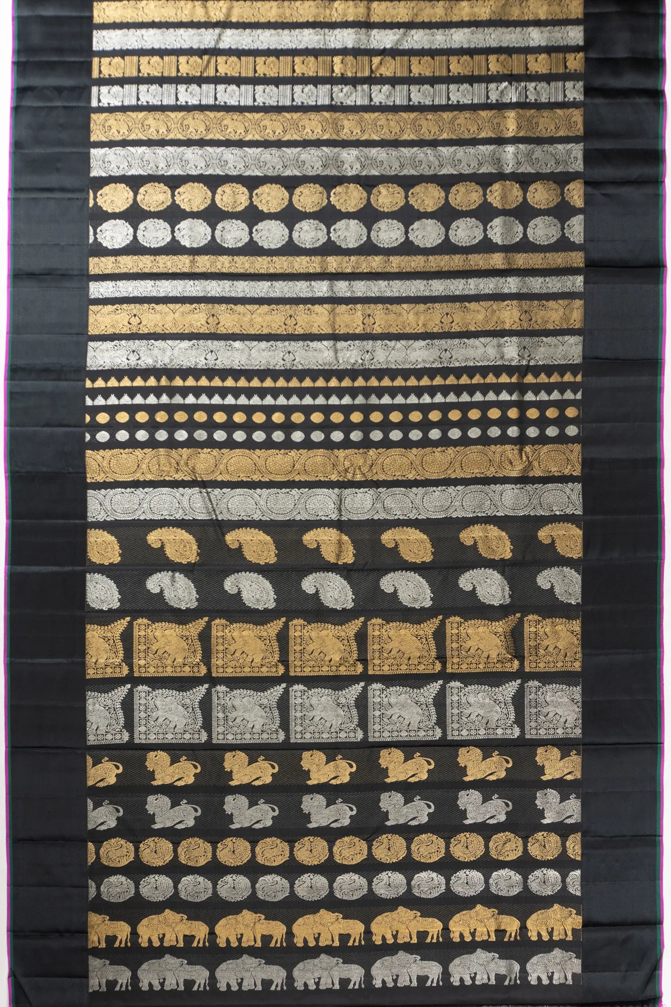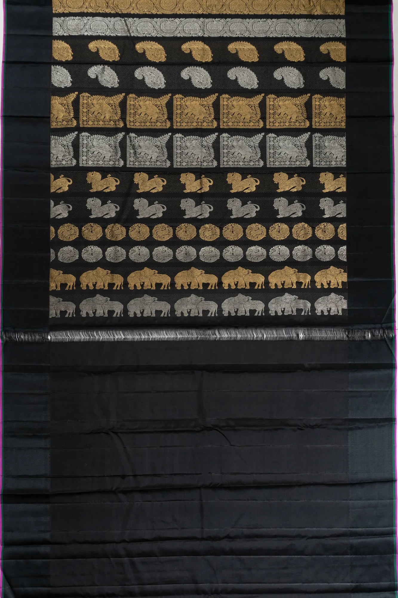 Classic Kanchipuram Silk Half And Half Brocade Black Saree