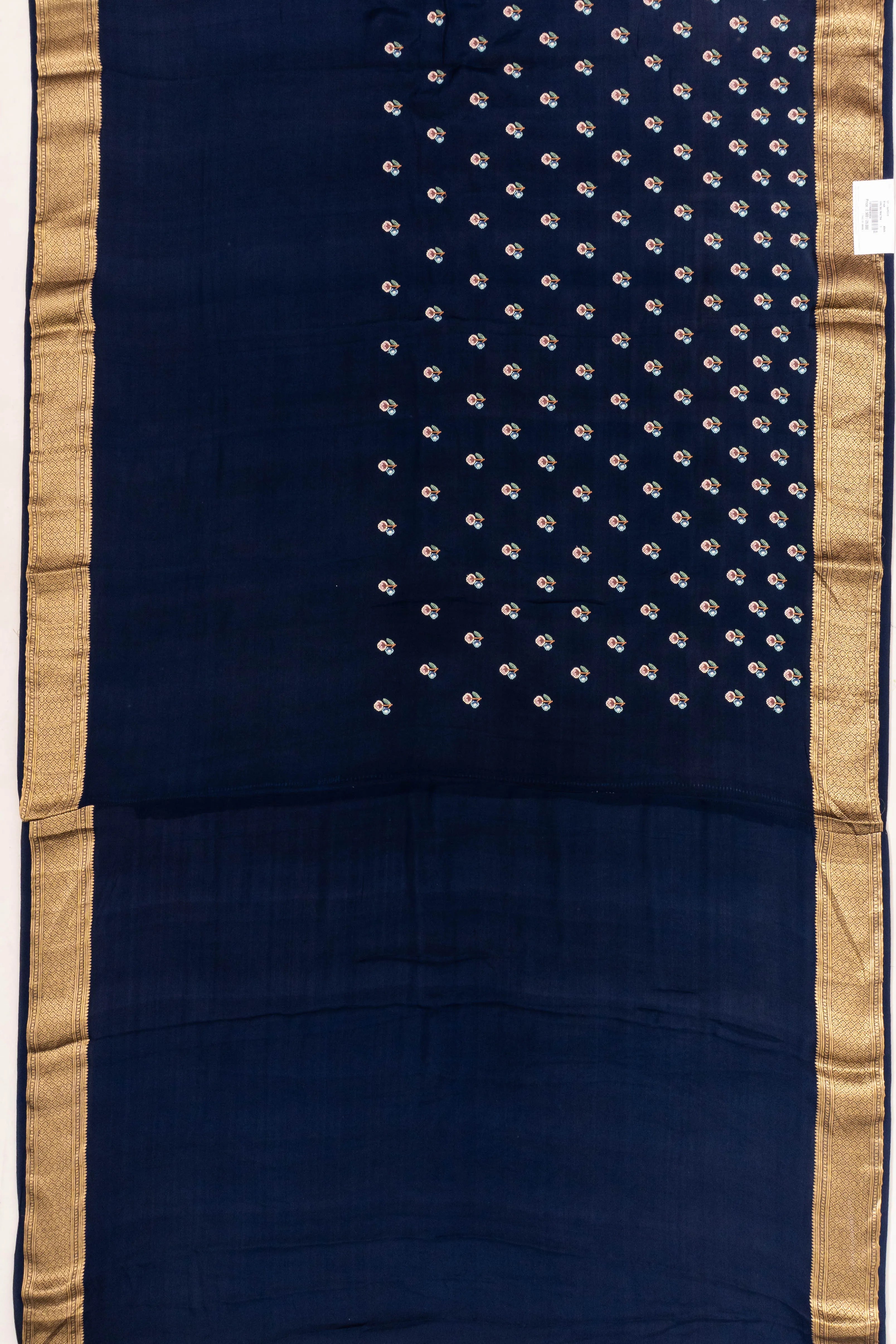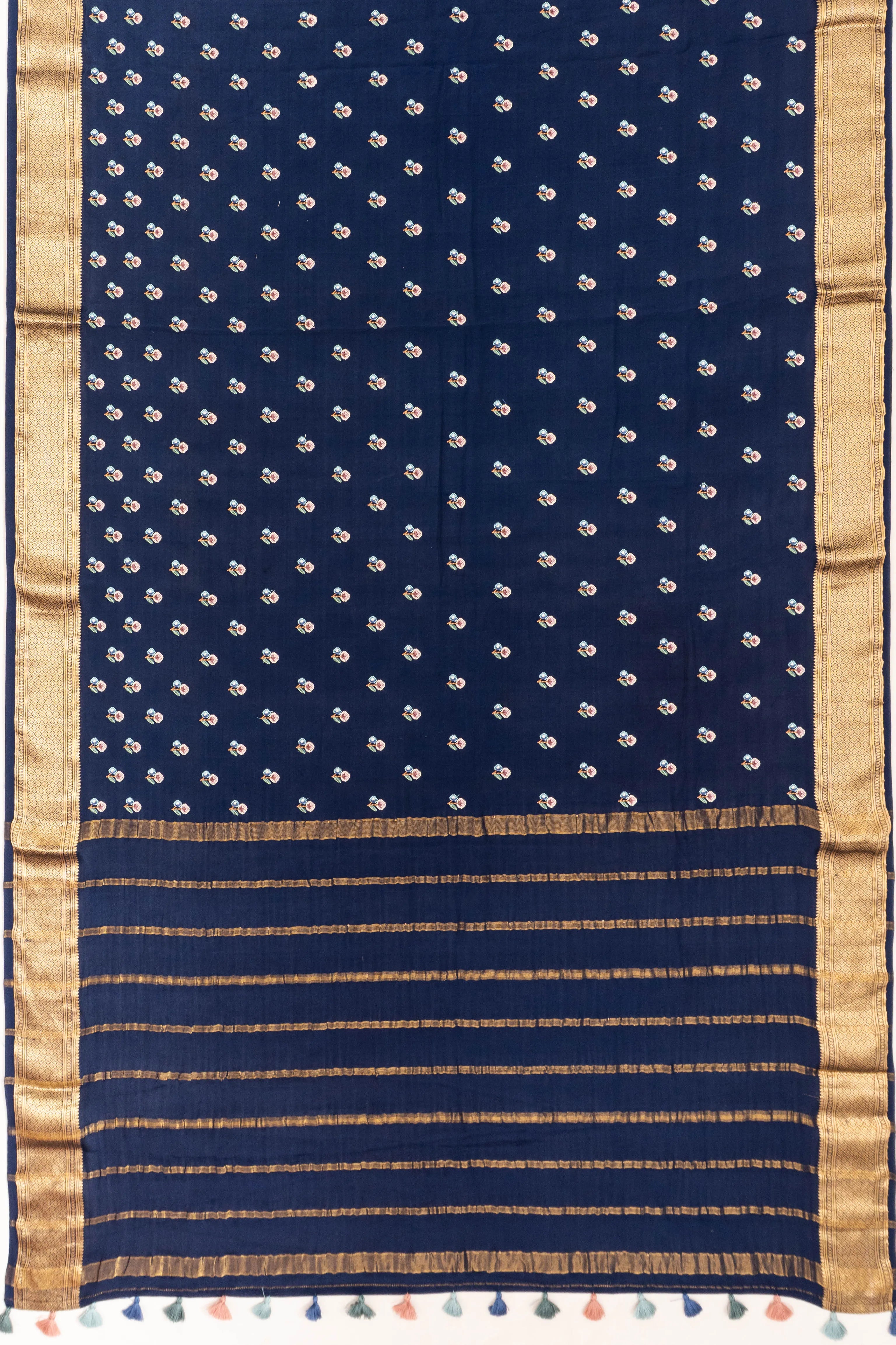 A self gold zari brocade small border encircles the saree, adding a touch of opulence and elegance