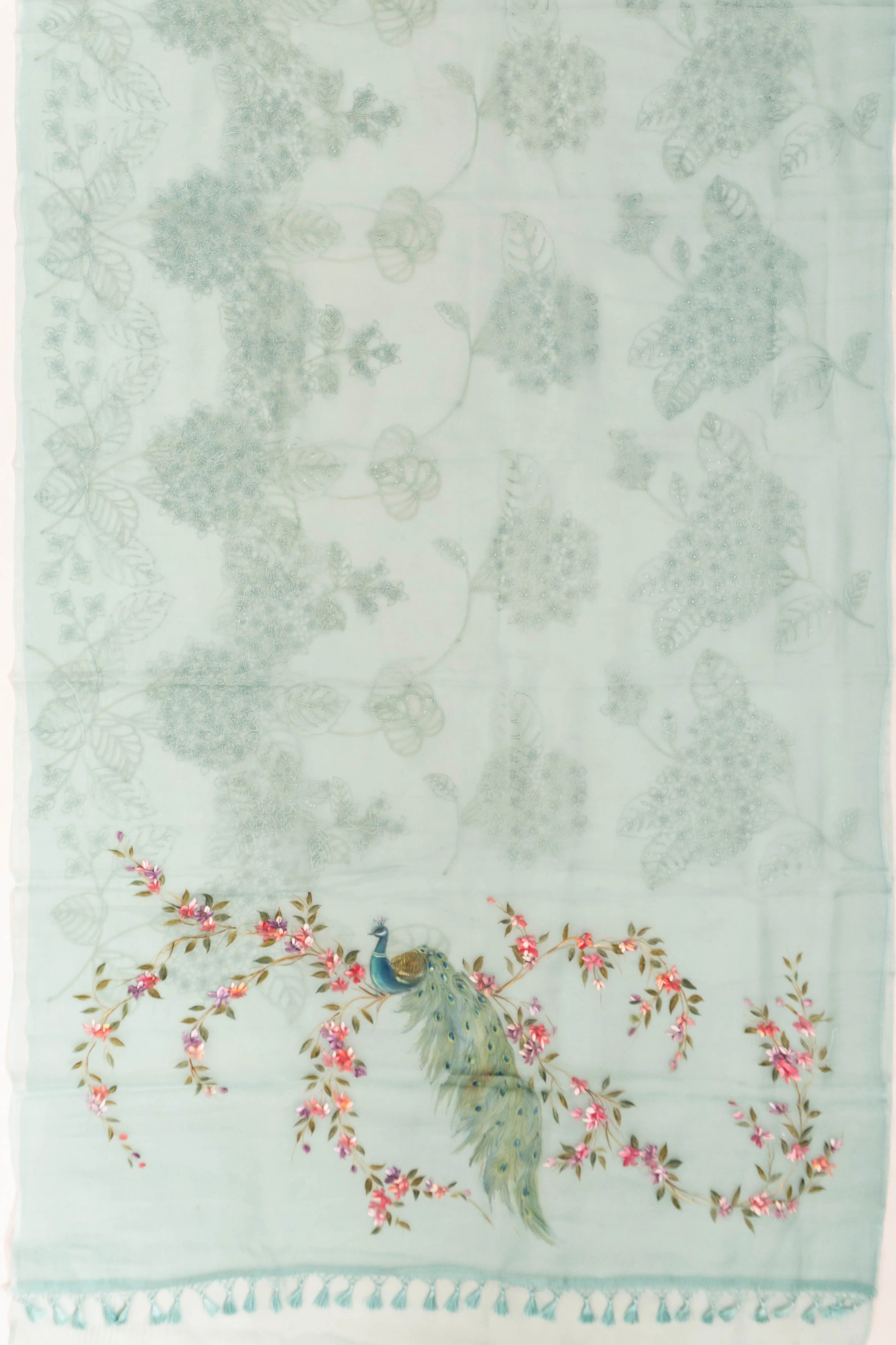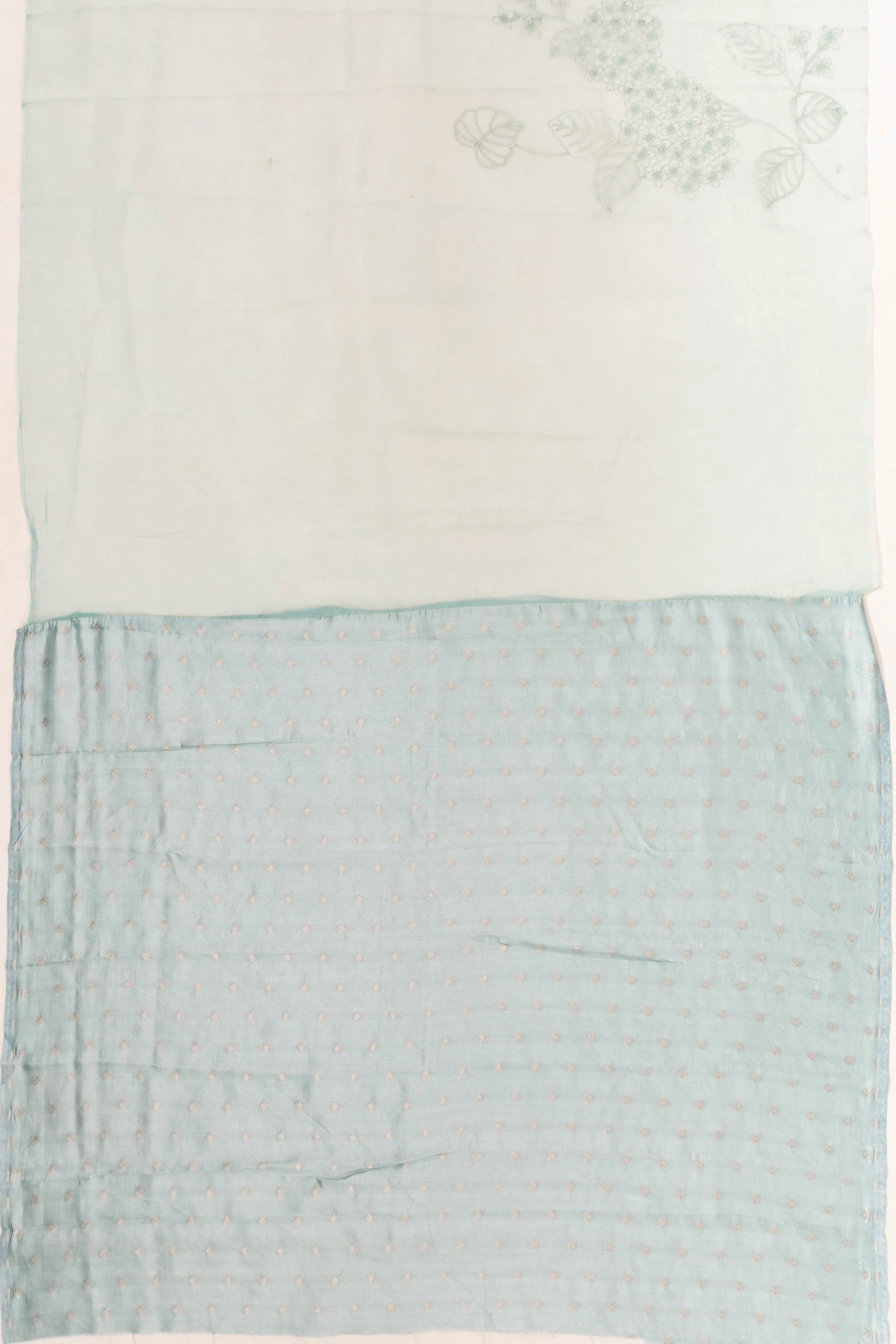 Organza Embroidery Pastel Blue Saree With Printed Pallu