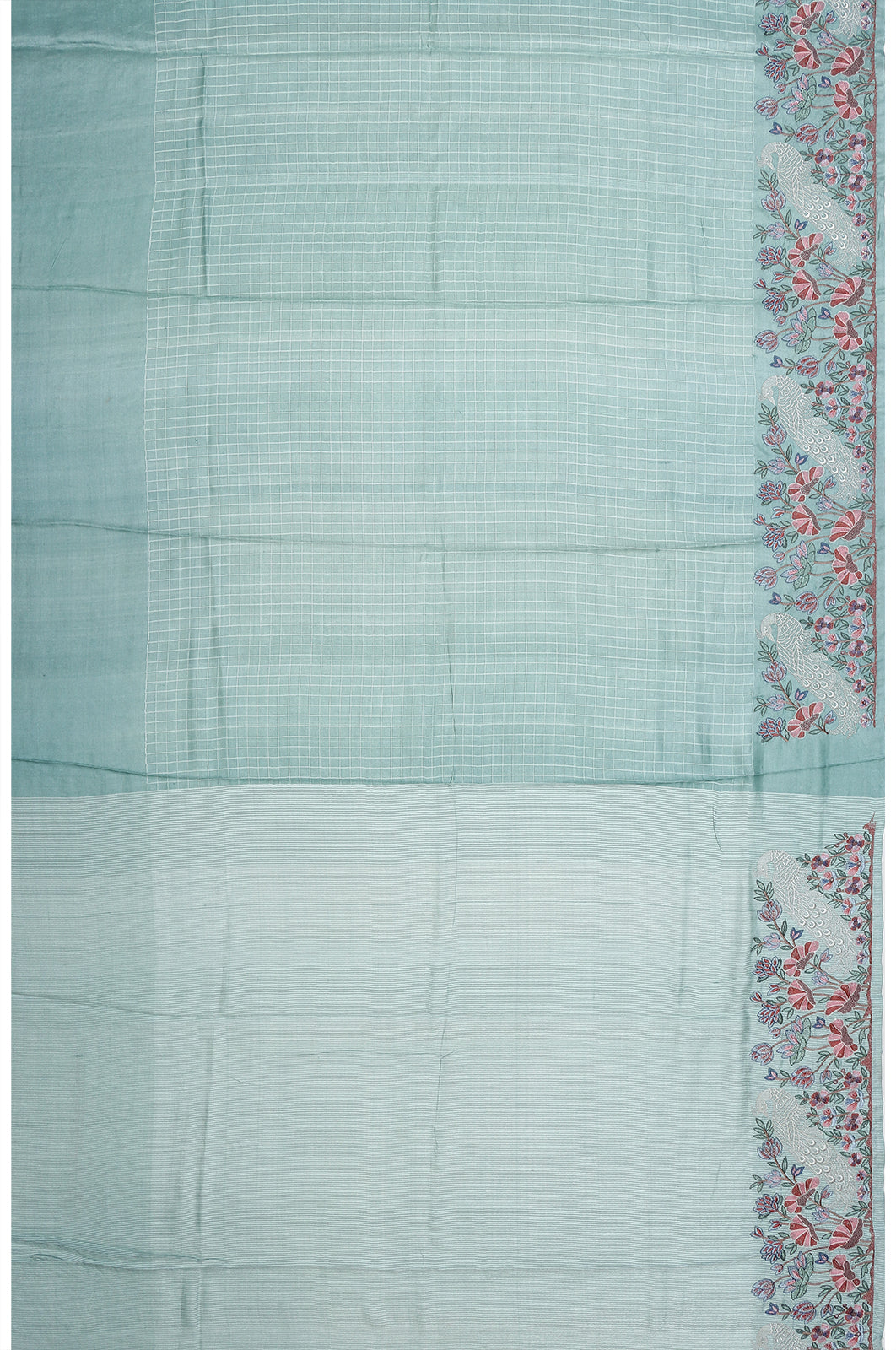 Tussar Checks Sky Blue Saree With Embroidery Border