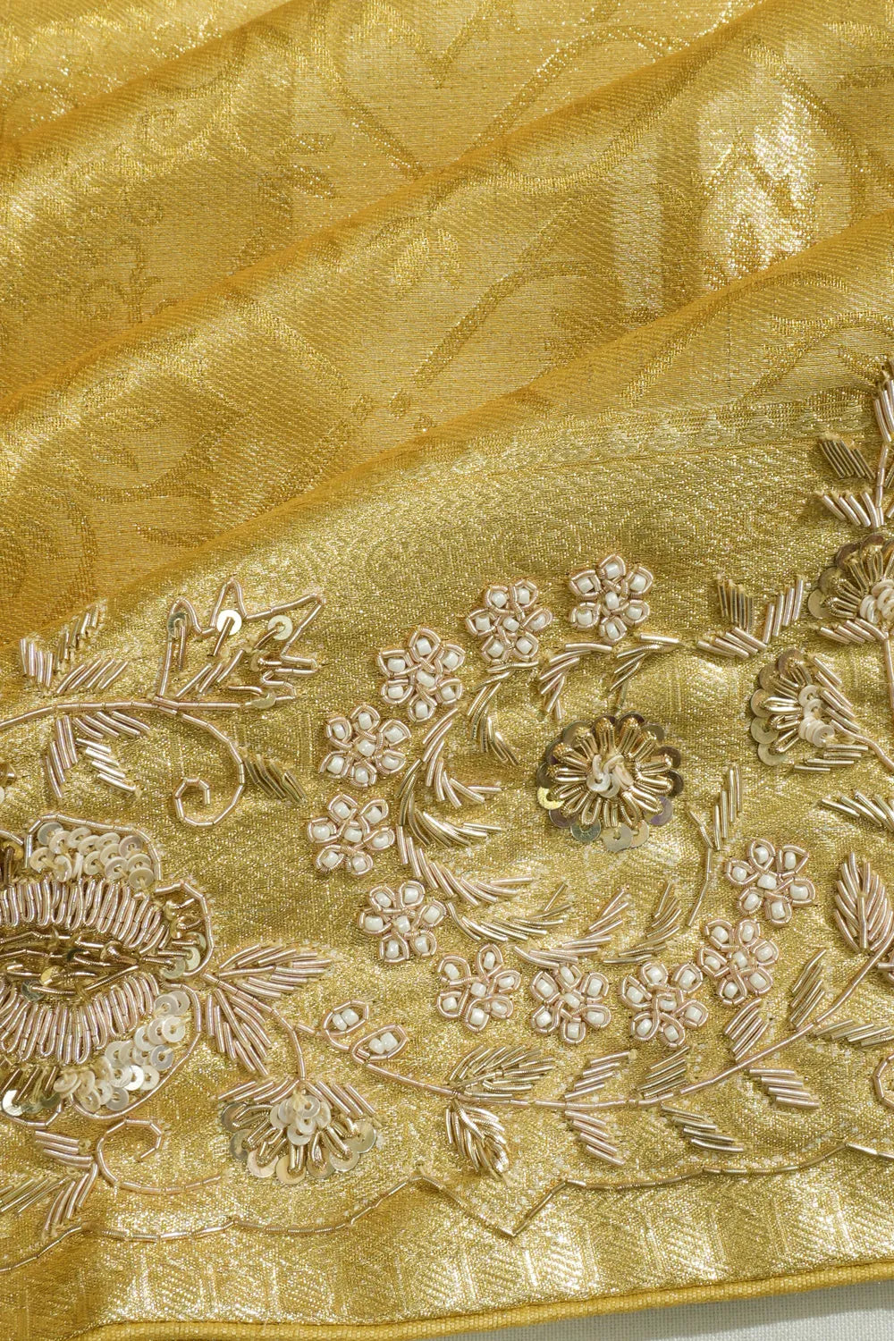 Our bridal sarees start at ₹25,000, with elaborate Pure Zari pieces up to ₹5,00,000. Custom masterpieces go as high as ₹9,00,000, featuring bespoke motifs and personalized borders. Custom orders take 2-3 months—plan early for your big day.