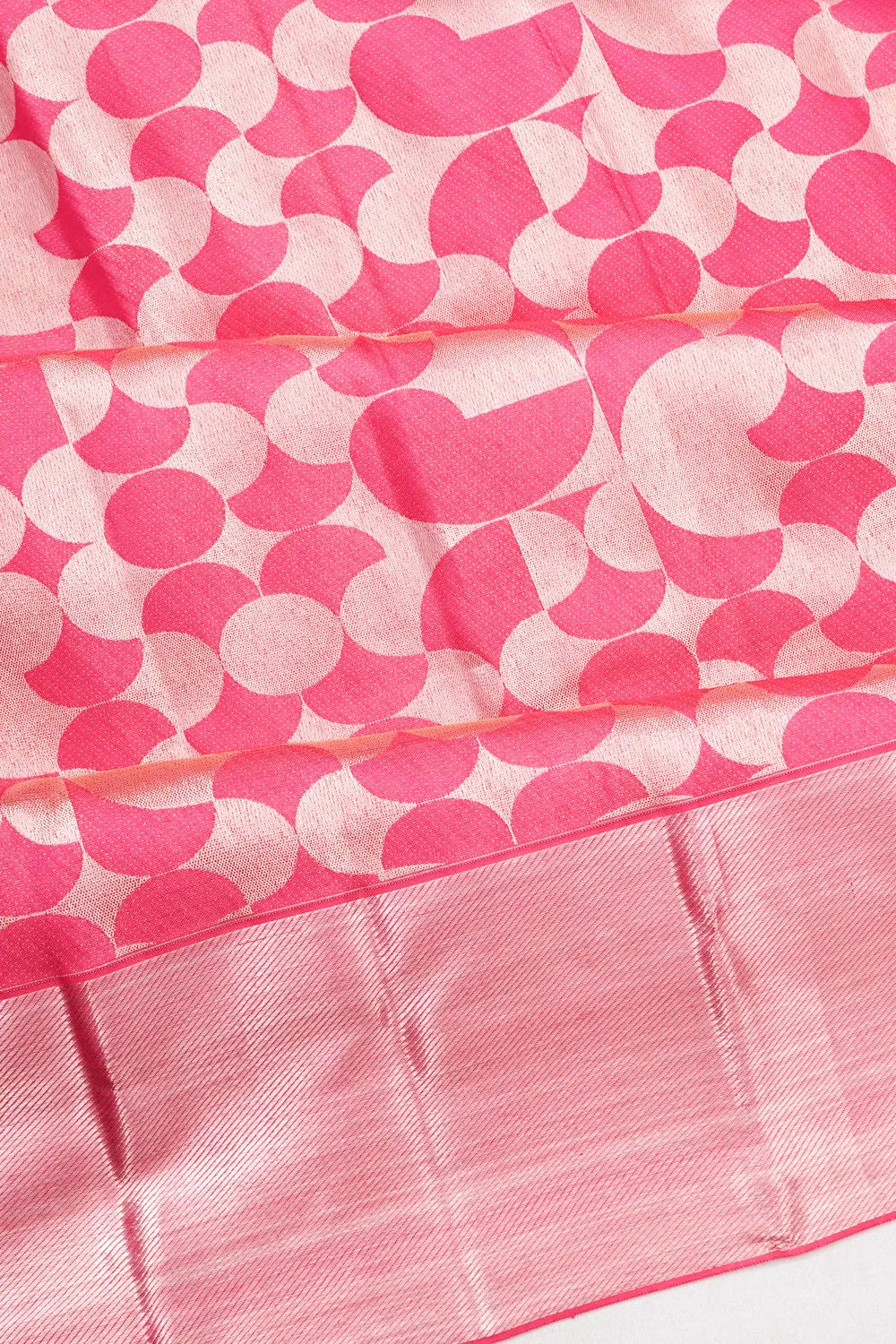 The pallu is meticulously crafted with a self gold zari brocade, showcasing zigzag lines that harmoniously blend tradition with modernity