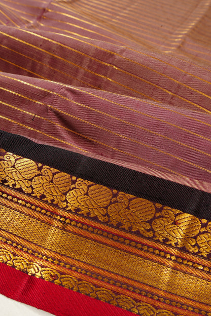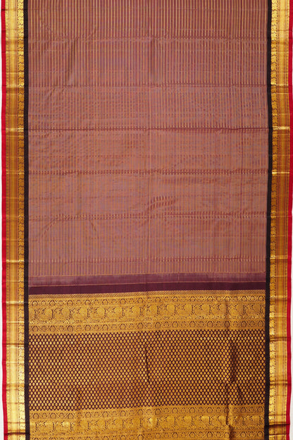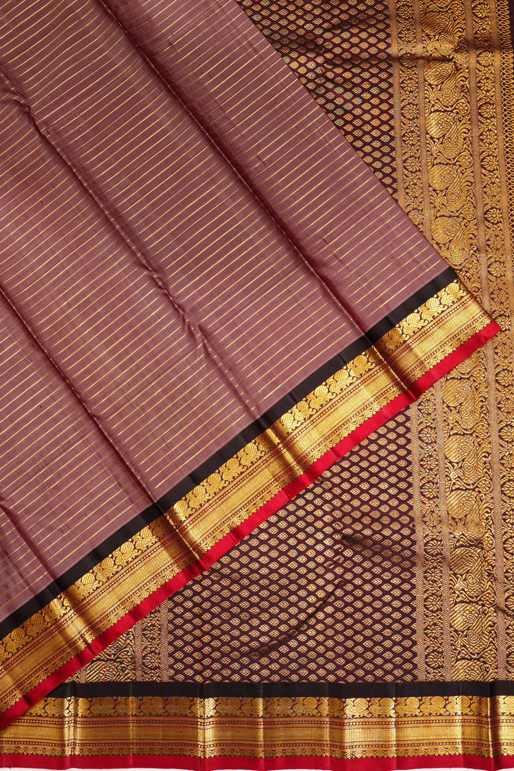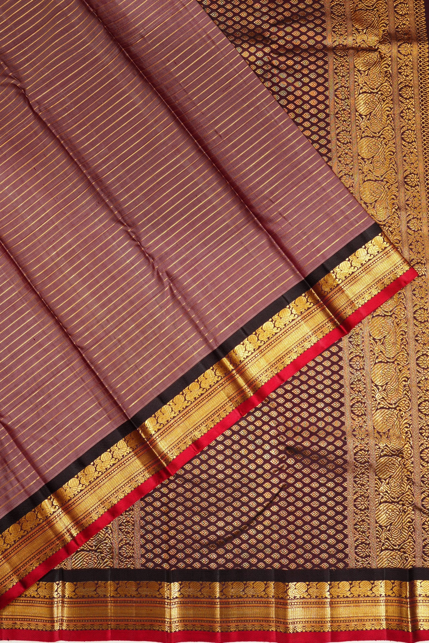 Kanchipuram Silk Horizontal Lines Choco Brown Saree