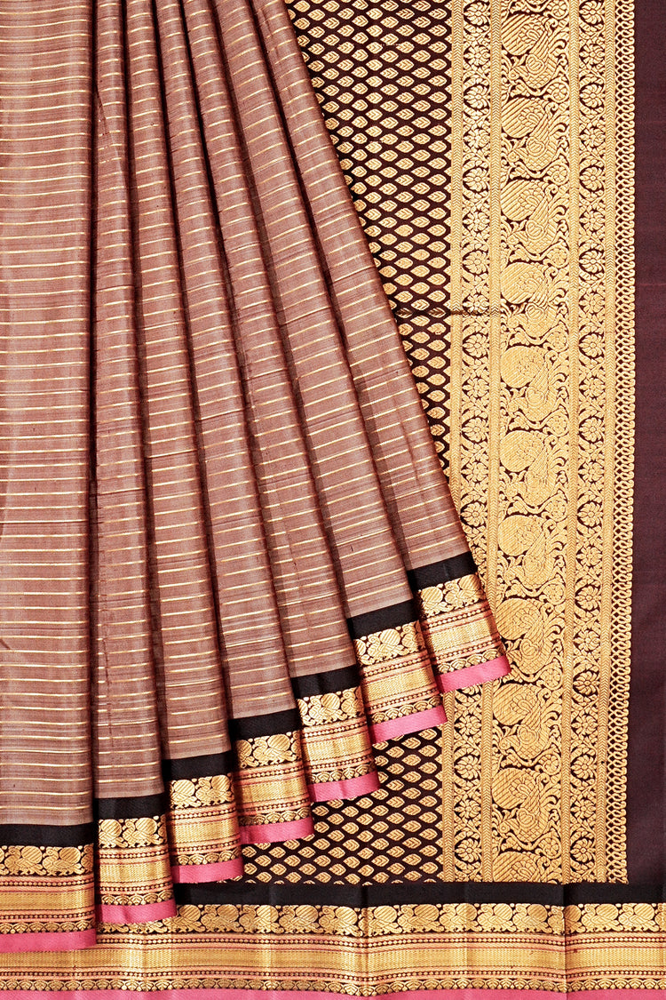 Kanchipuram Silk Horizontal Lines Pastel Brown Saree