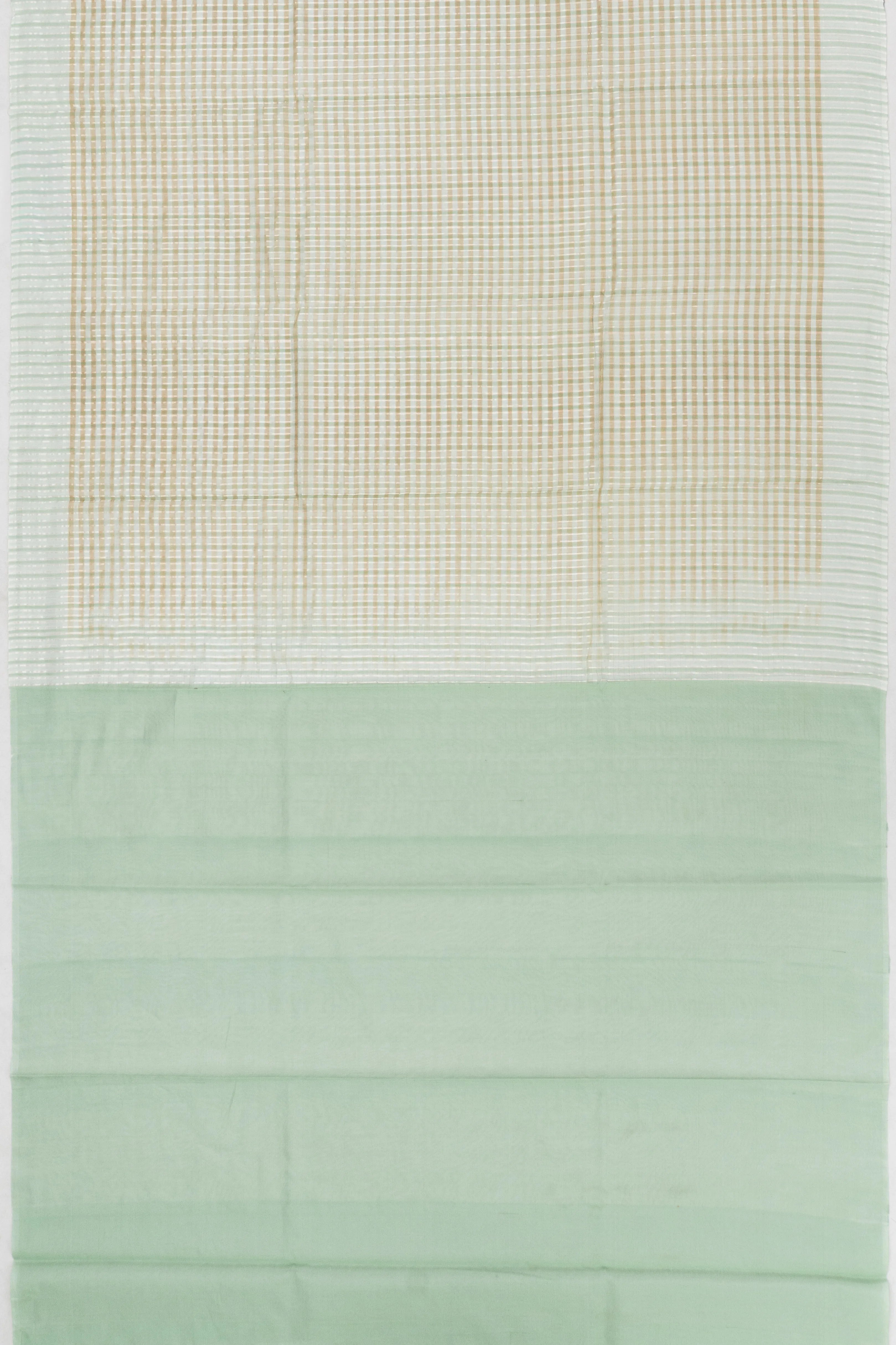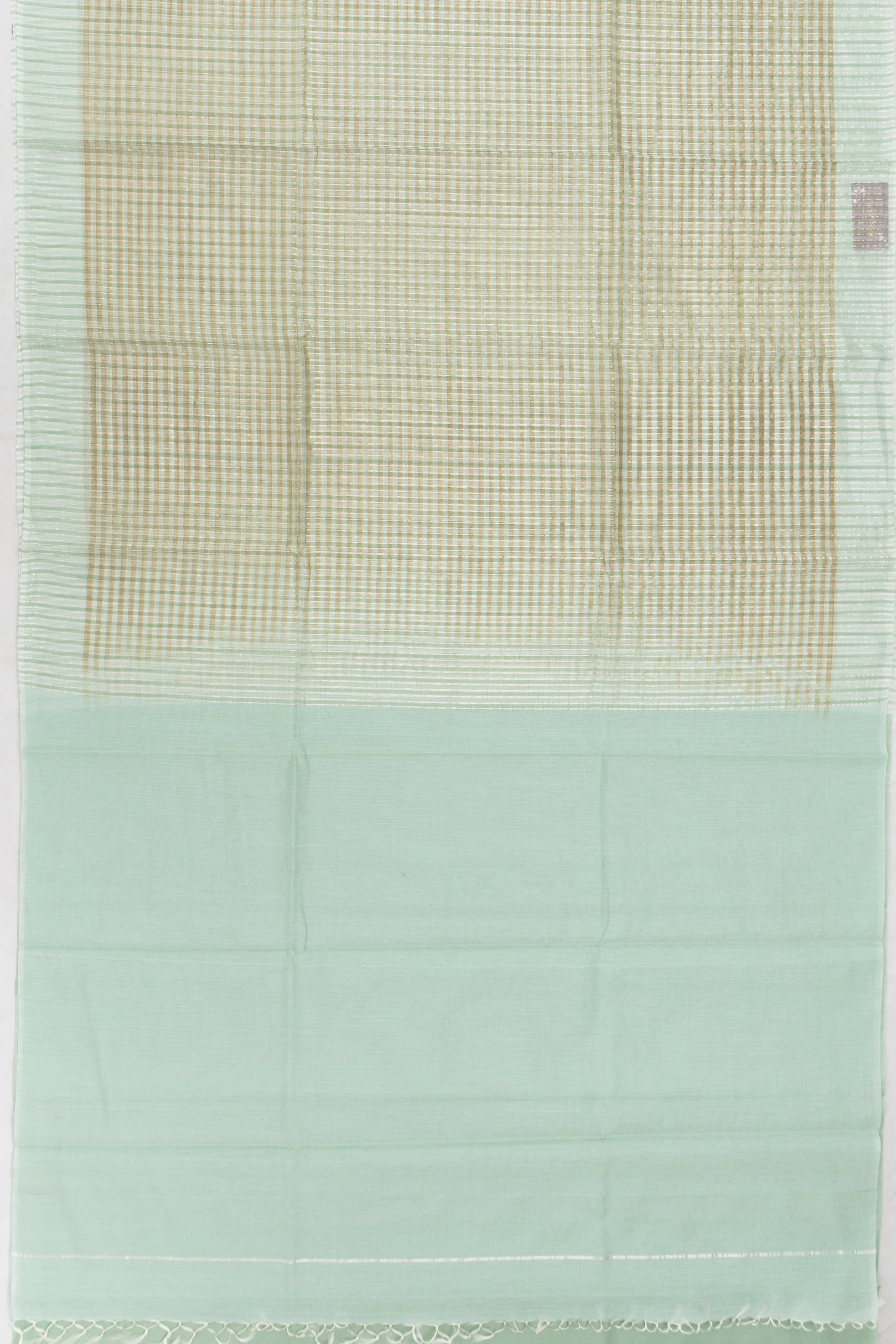A small, self sea green border frames the saree with understated elegance, leading to a self plain pallu that completes the harmonious design