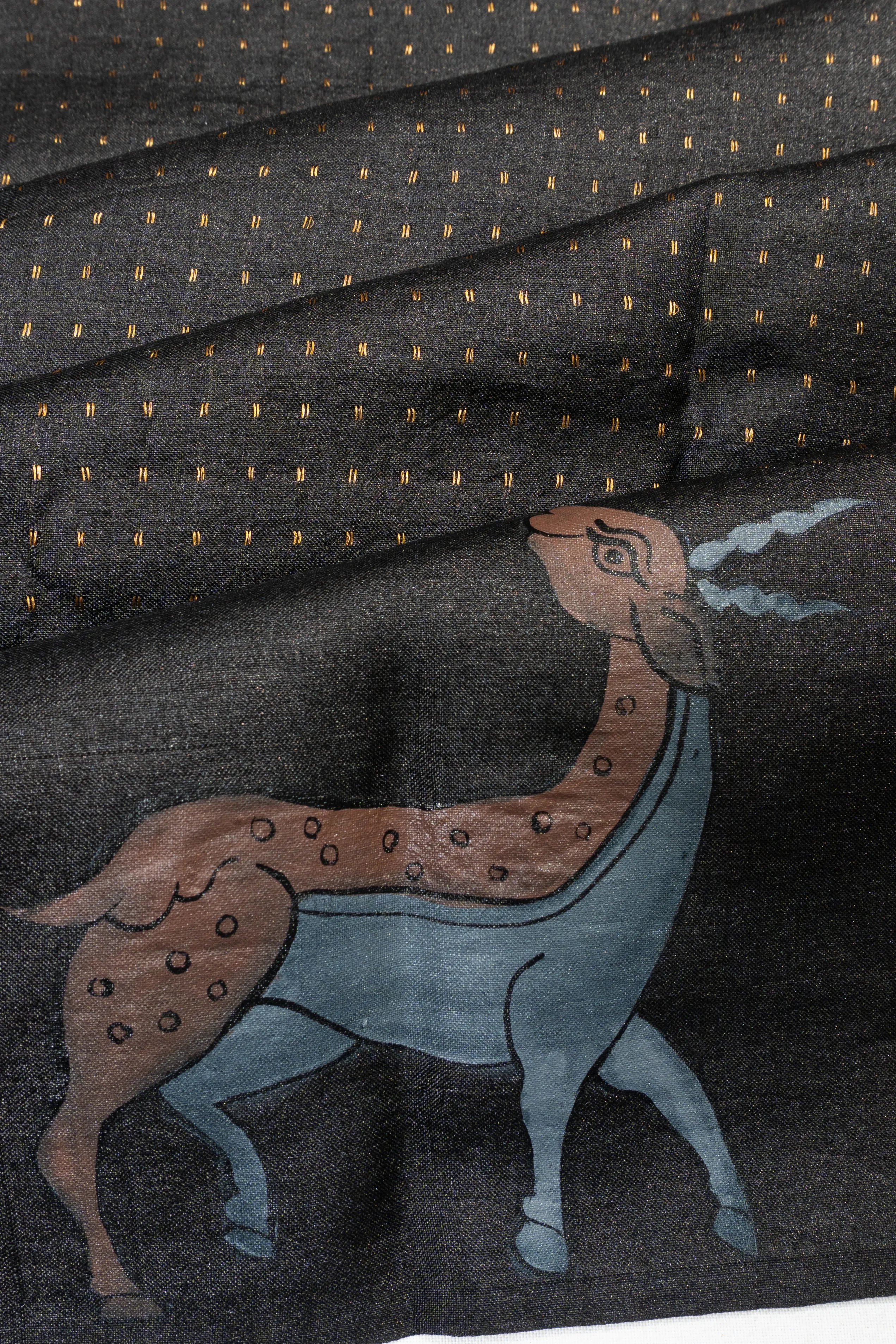 Tussar Brocade Black Saree With Hand Painted Border And Pallu