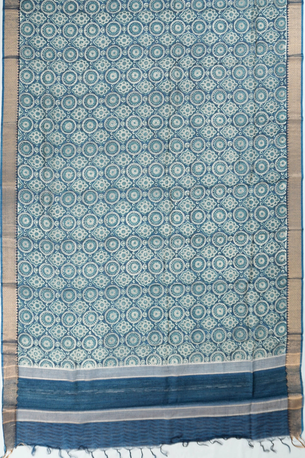 Tussar Brocade Blue Saree