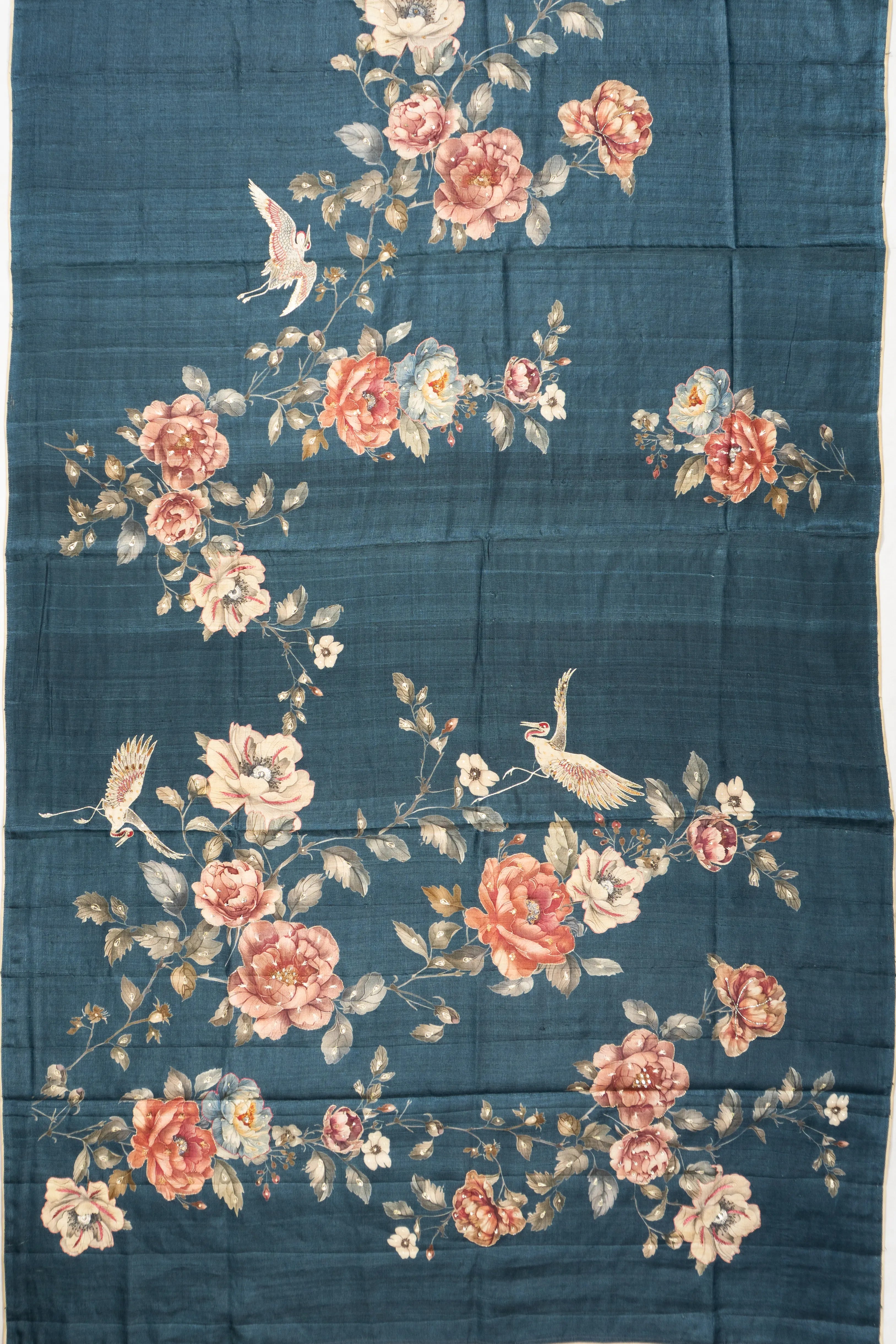 This saree features a body adorned with exquisite floral prints, enhanced with delicate sequin and embroidery outlines, evoking a sense of timeless beauty and grace