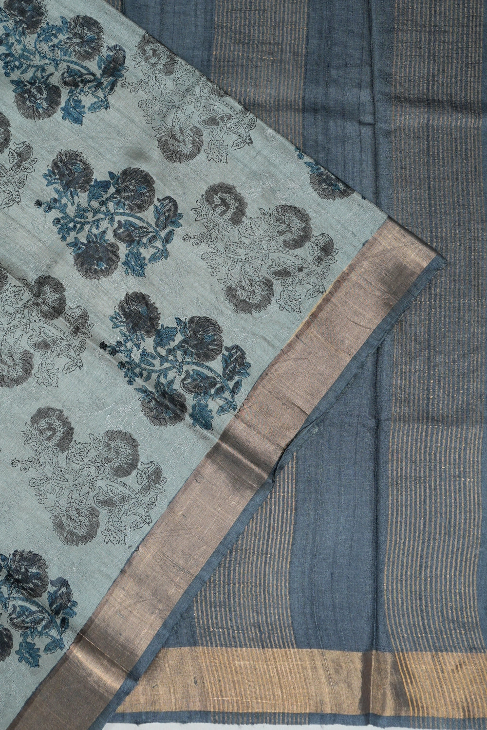Tussar Floral Printed Blue Saree