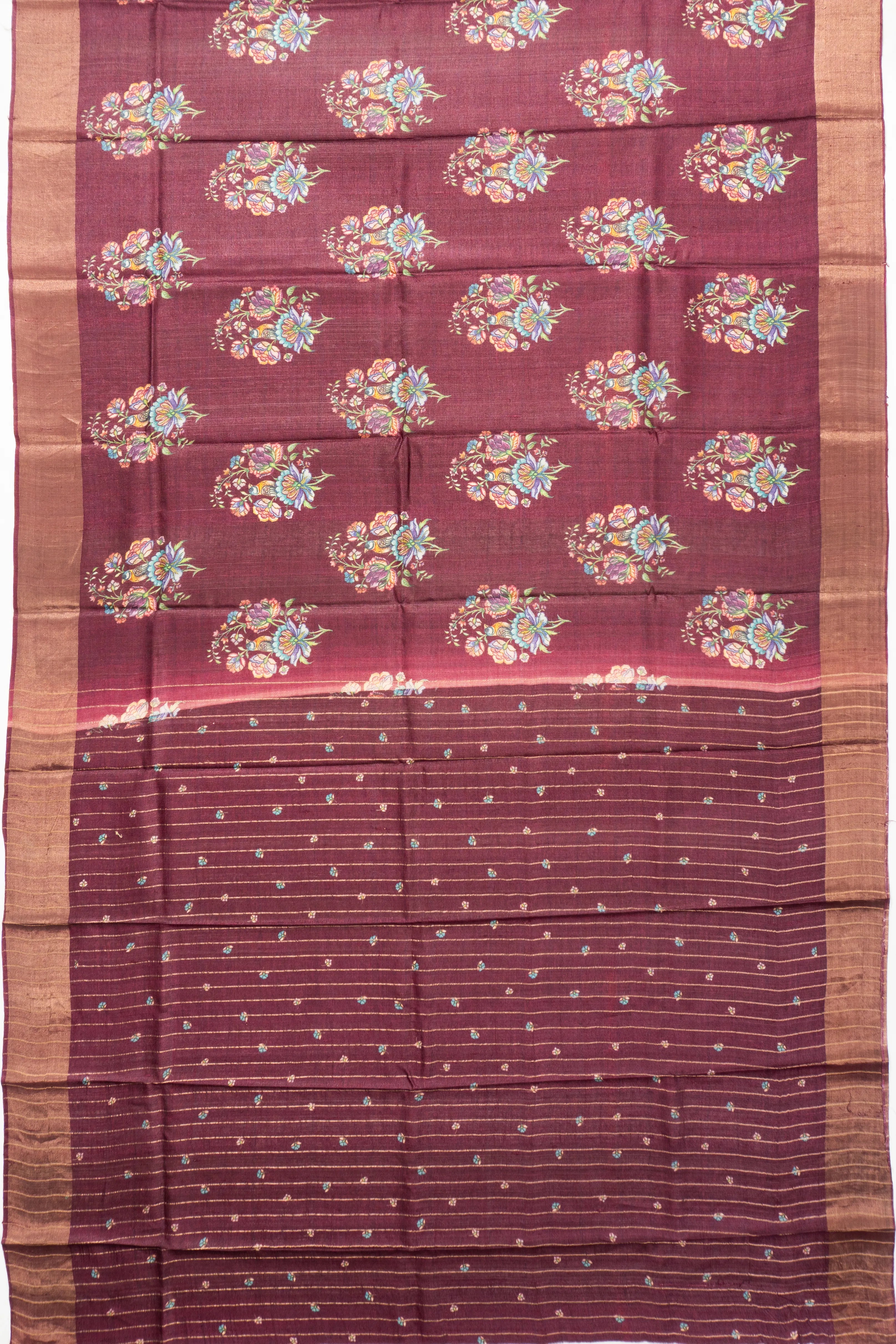 Crafted from luxurious tussar silk, this saree embodies refined tradition and timeless beauty