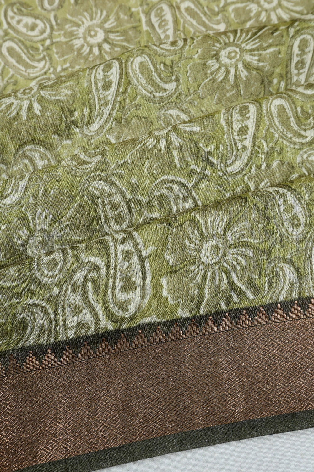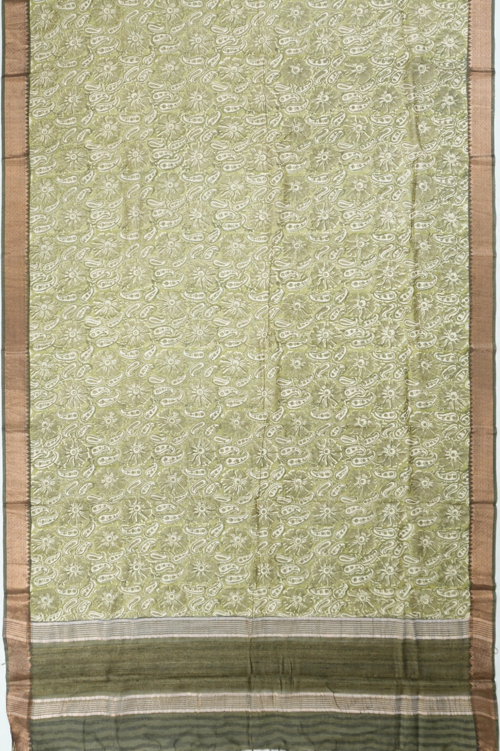 Tussar Floral Printed Green Saree