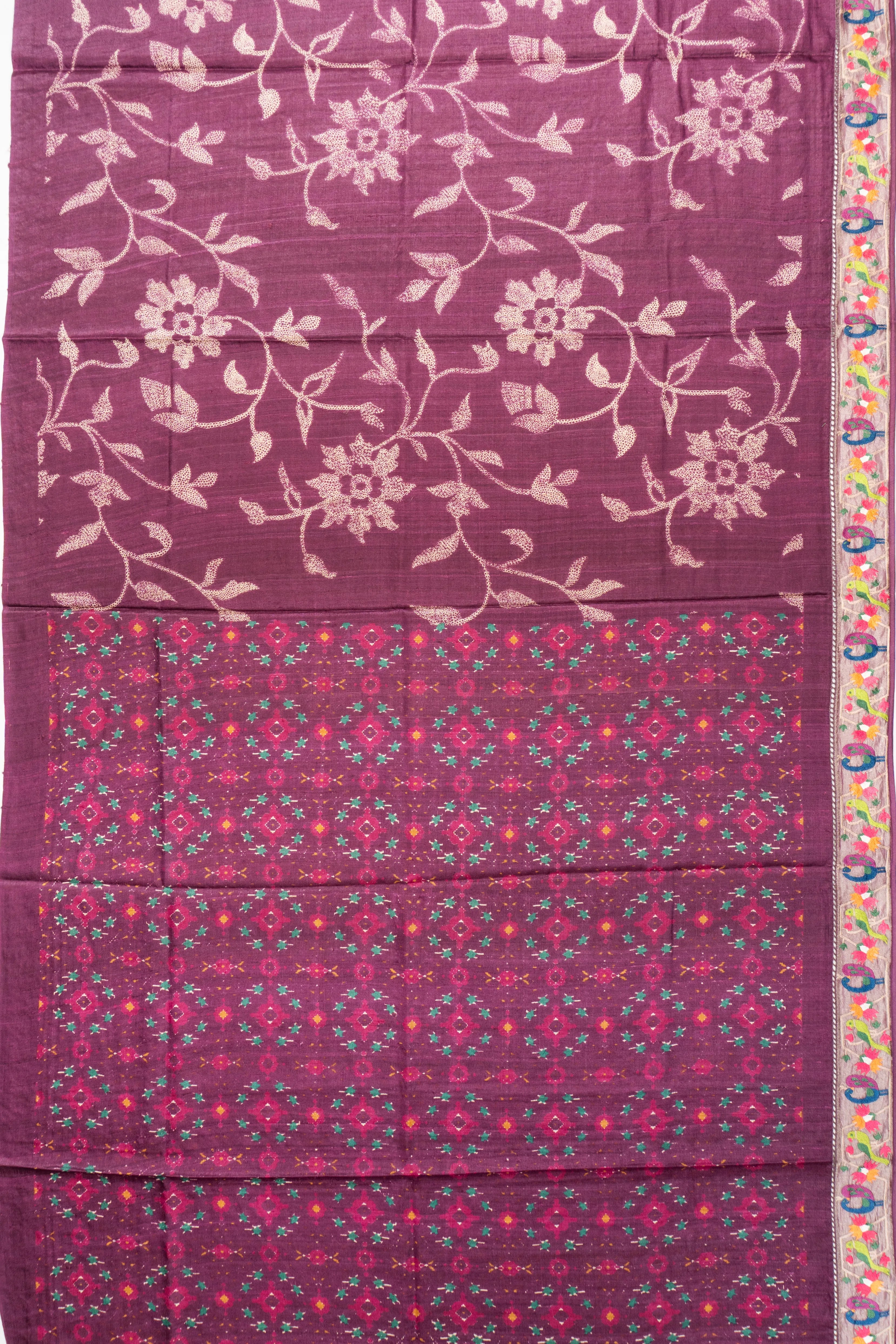 Tussar Floral Printed Purple Saree With Embroidery Border