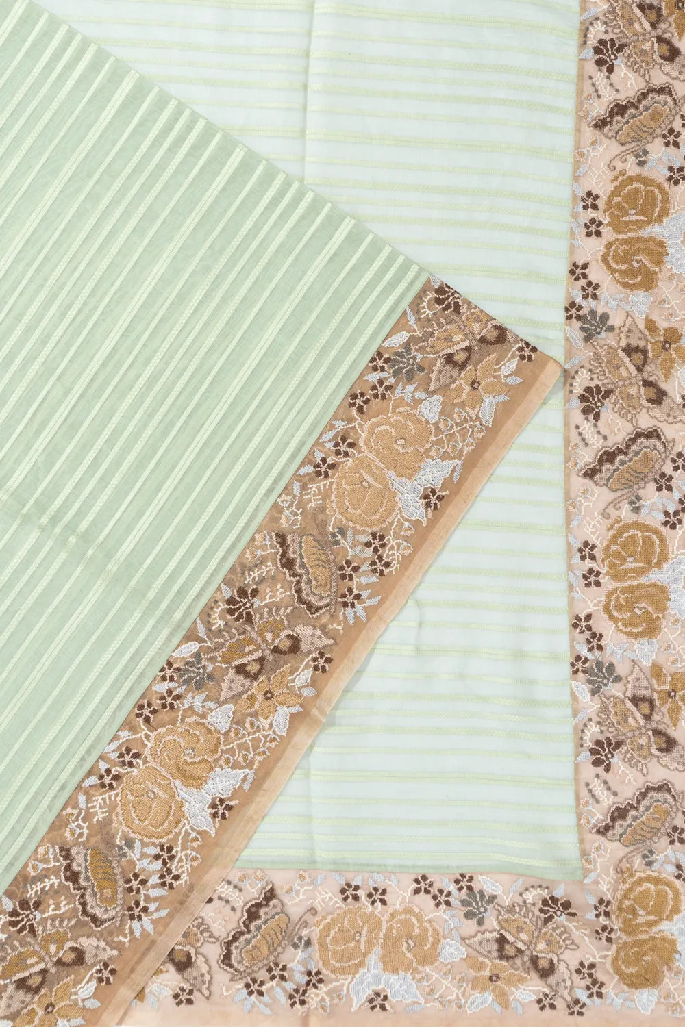 Chanderi saree is typically available in white cotton with heavy golden or silver embroidery work and with checkered patterns on the border. The most popular Chanderi cotton saree designs are a broad striped gold embroidered saree, with silver Chanderi and gold chequered Chanderi saree.