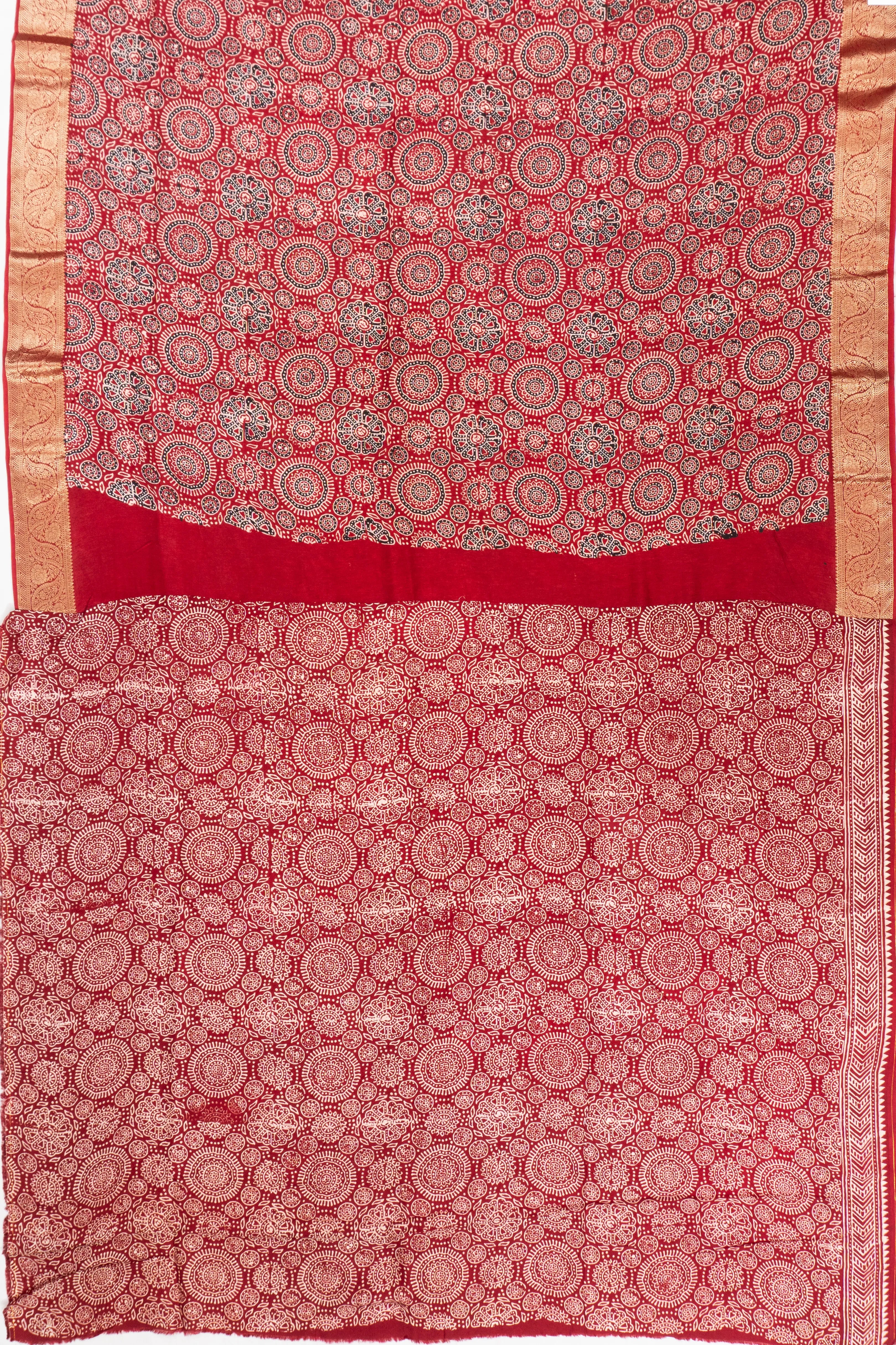 Chanderi Cotton Ajrakh Floral Printed Brocade Red Saree
