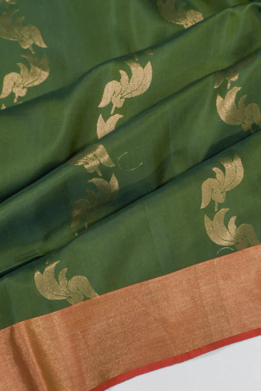 Embrace the grace of heritage with our Coimbatore Soft Silk Jaal Green Saree, an exquisite blend of tradition and elegance The saree's body is adorned with intricate patterns, offering a visual symphony that echoes the rich culture of Indian craftsmanship