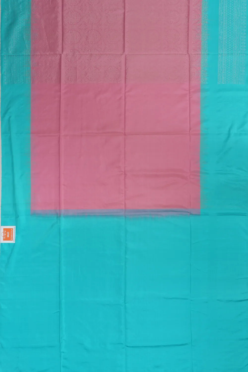 The vibrant pink body of the saree is beautifully offset by a striking contrast zari brocade border in big blue, adding an element of grandeur to the ensemble