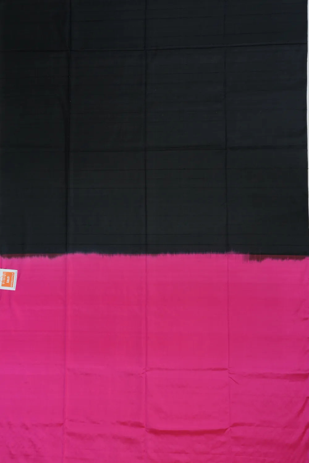 Complementing the saree is a plain pink blouse, offering a seamless and refined finish