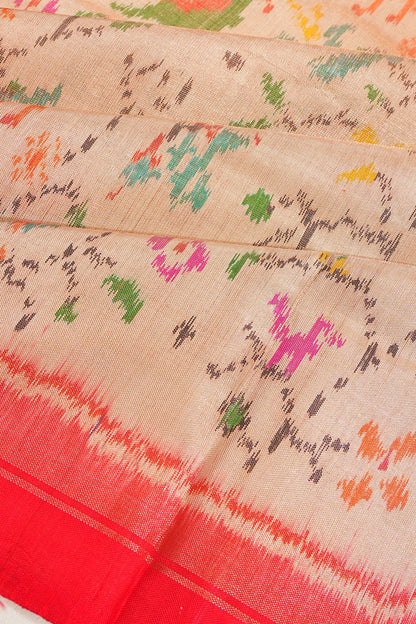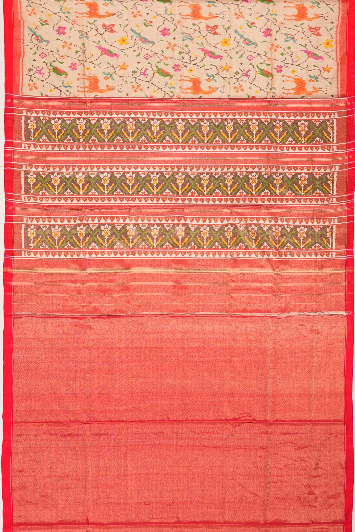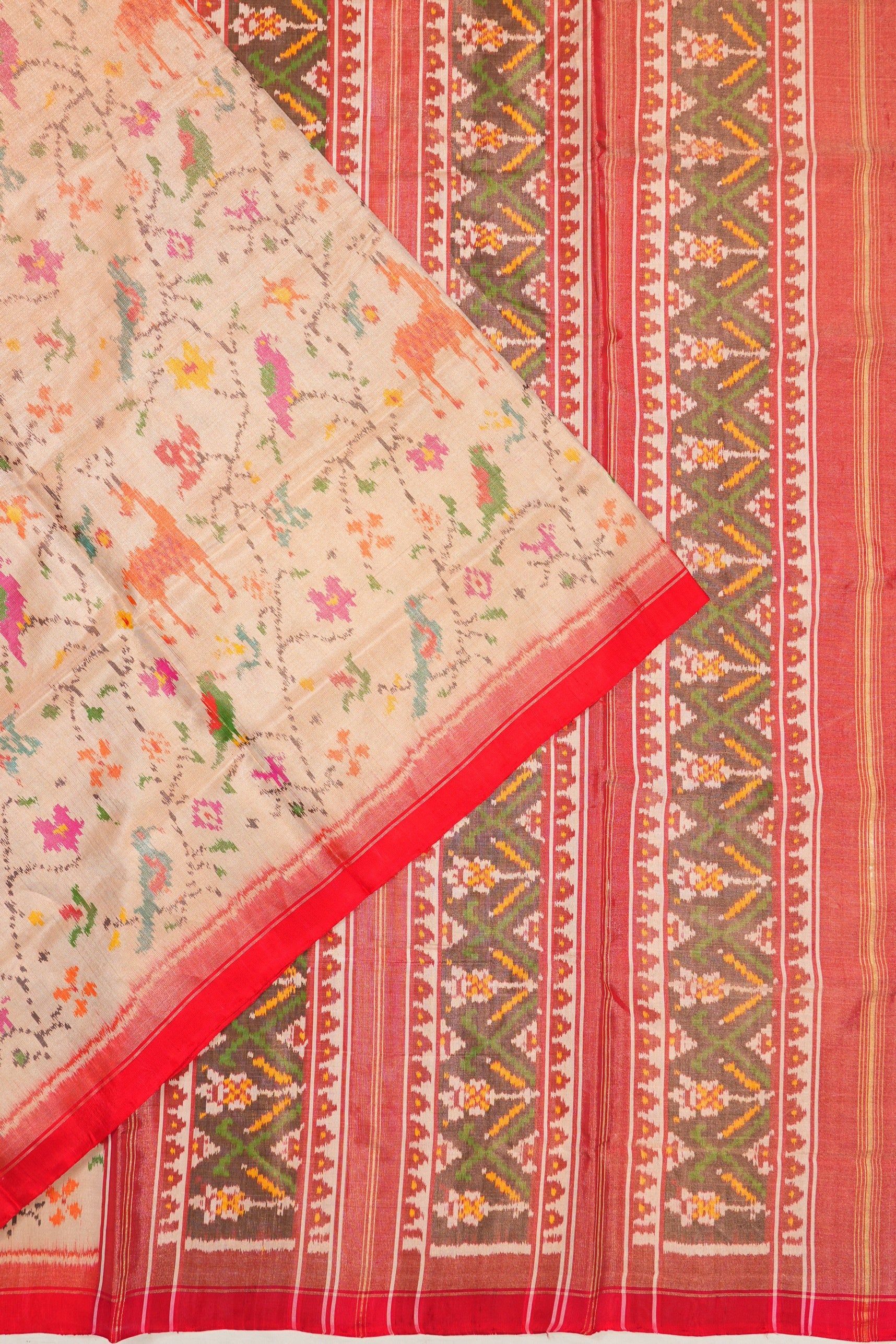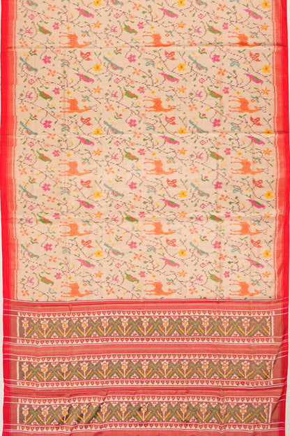 Semi Patan Patola Silk Tissue Ikat Cream Saree
