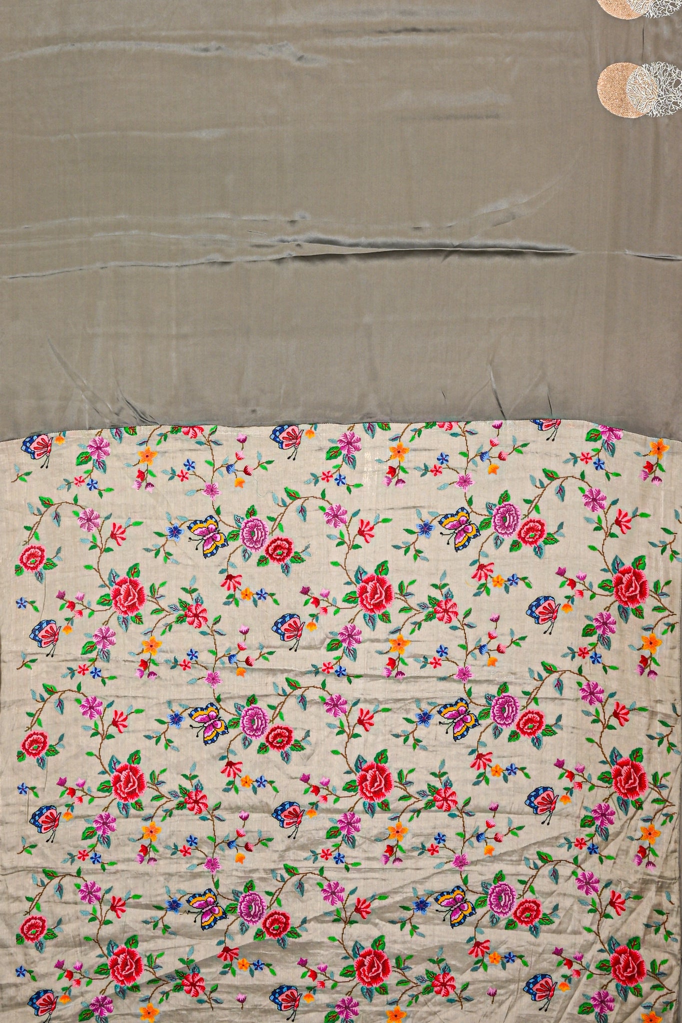 Banarasi Satin Plain Grey Saree With Embroidery Blouse