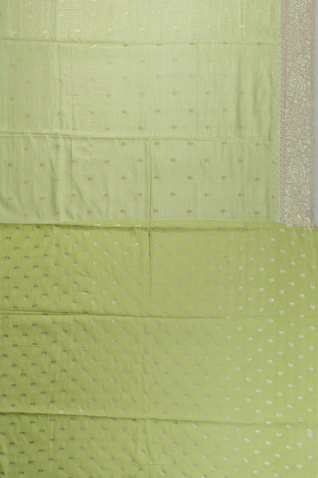 Chiniya Silk Checks And Butta Pista Green Saree With Organza Embroidery Border