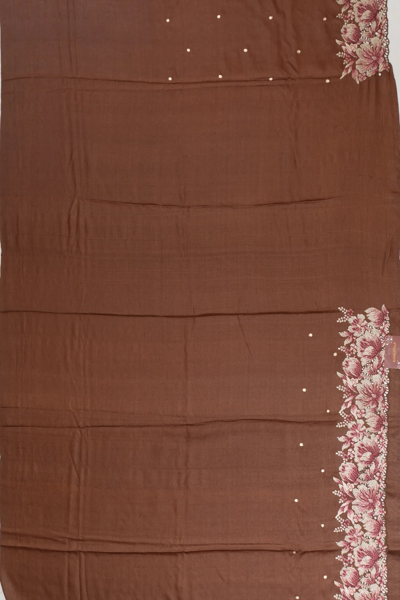 Tussar Butta Choco Brown Saree With Cut Work Embroidery Border
