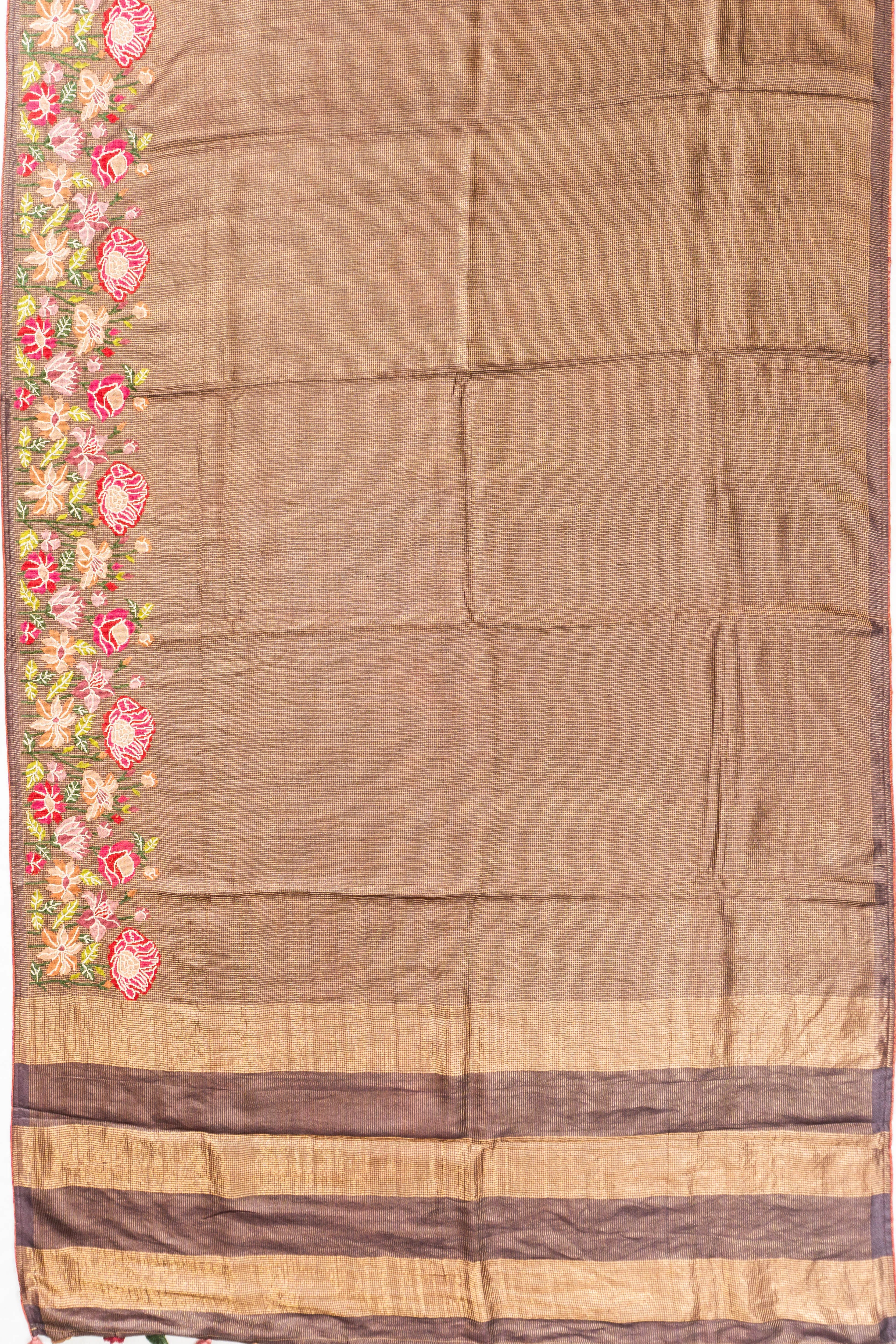 Tussar Checks Choco Brown Saree With Embroidery Border