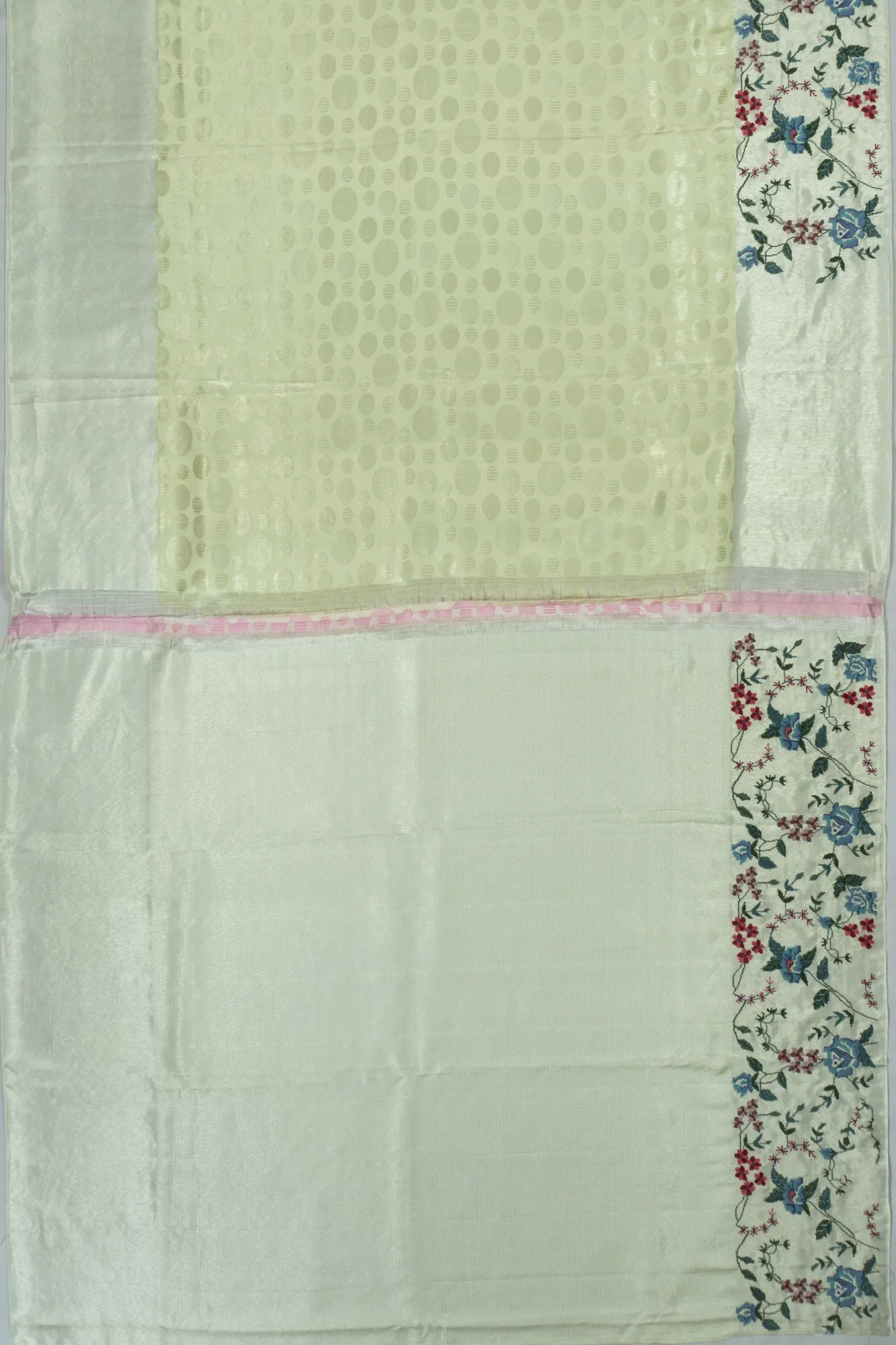 Banarasi Satin Polka Dot Butta Pastel Green Saree With Embroidery Border