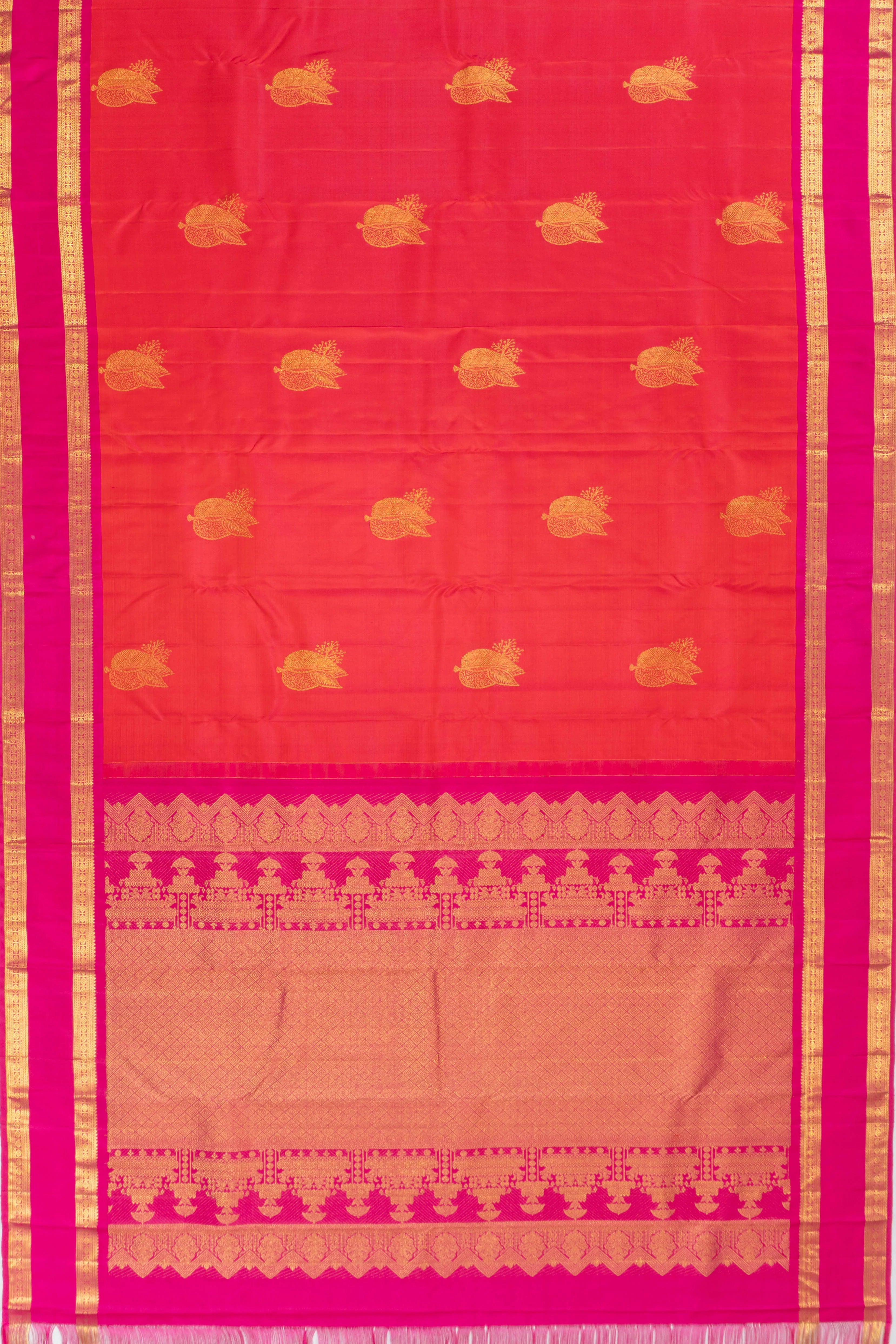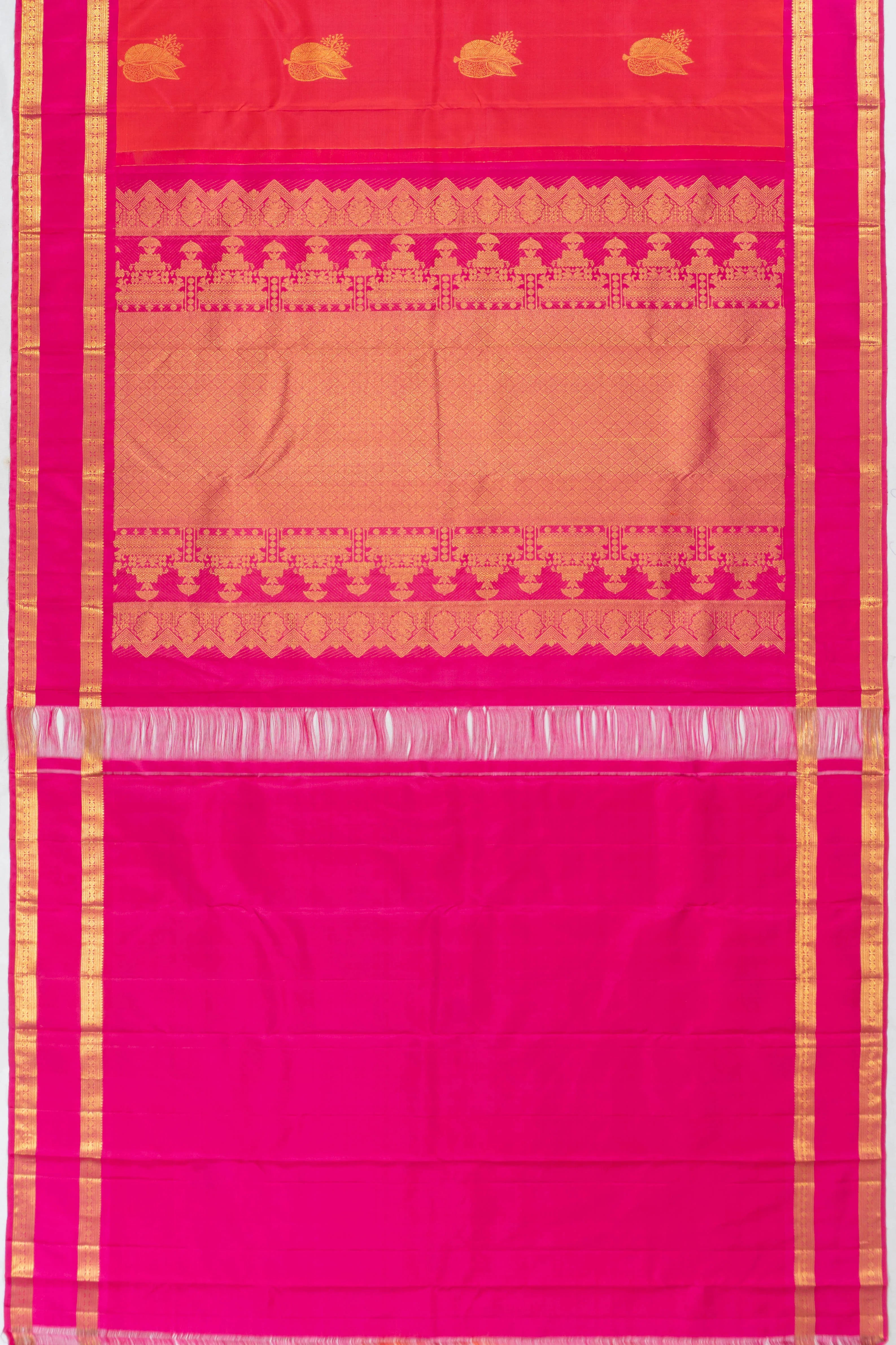 Kanchipuram Silk Butta Dual Tone Pink And Orange Saree