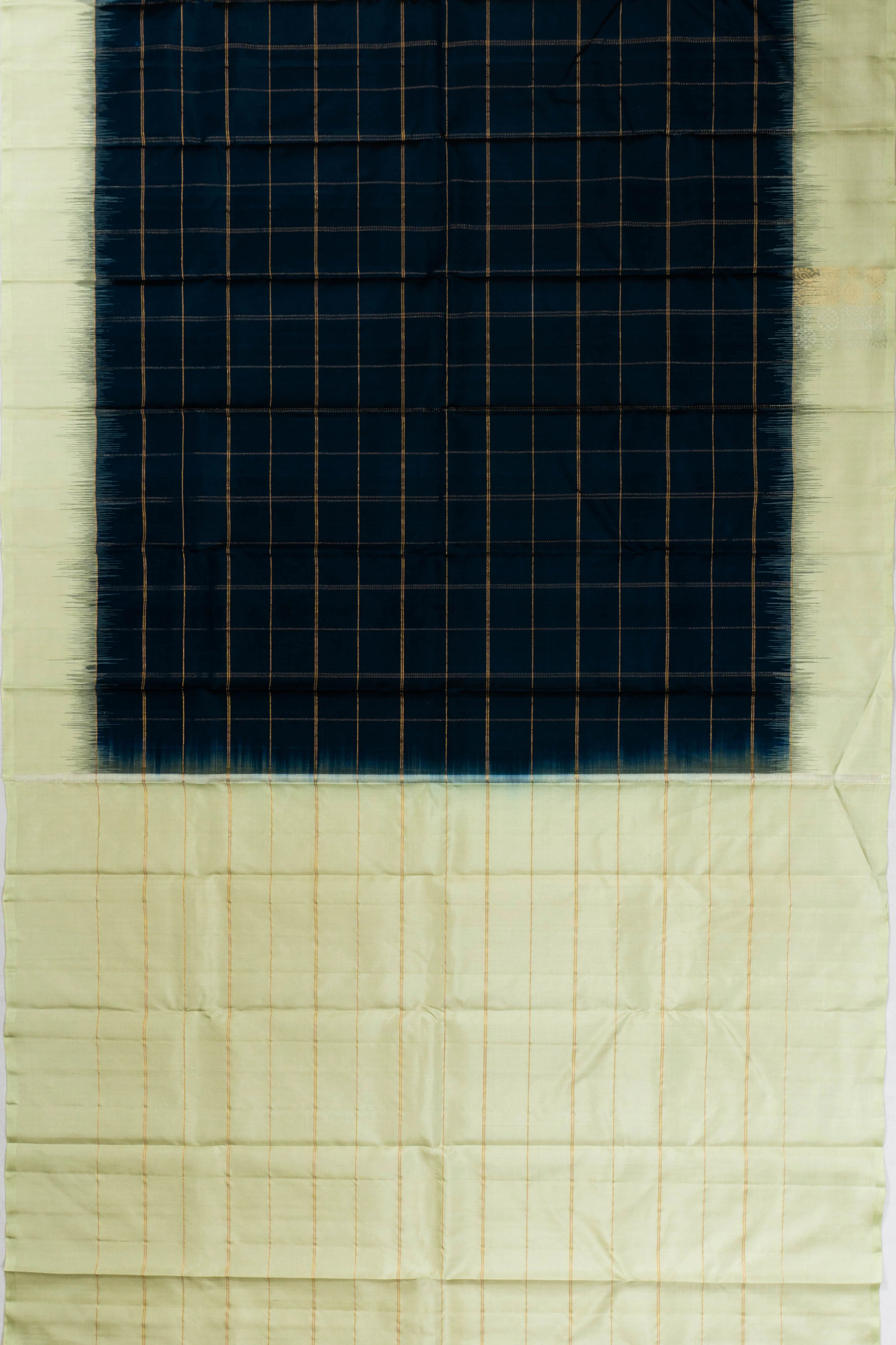 The body is adorned with delicate gold and silver zari checks that exude a subtle shimmer, capturing the essence of timeless elegance
