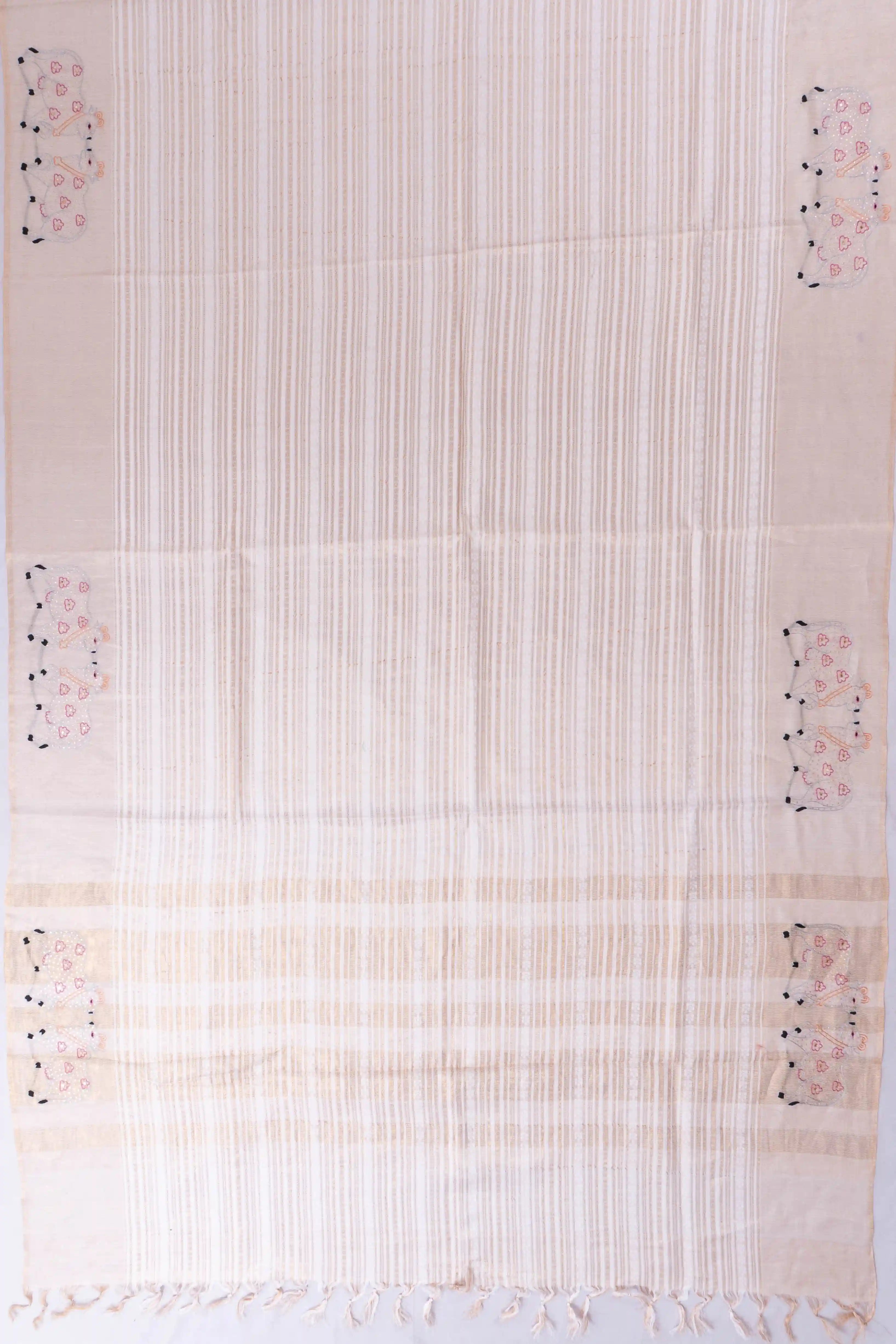 Tussar Horizontal Brocade Cream Saree With Embroidery Pichwai Border