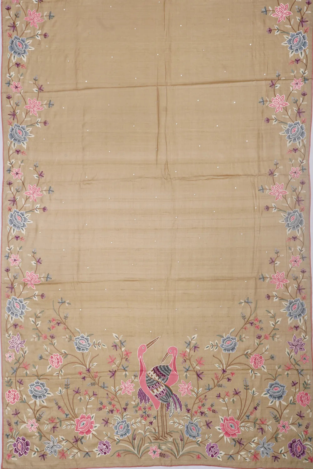 Tussar Mirror Butta Beige Saree With Embroidery Border