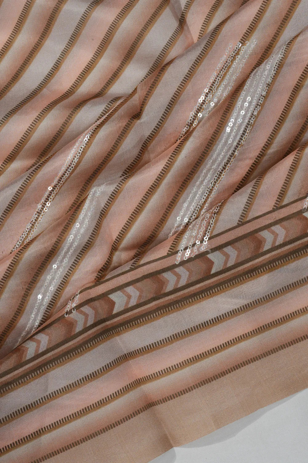 The pallu, adorned with self-printed patterns, enhances the sarees cohesive and harmonious appeal
