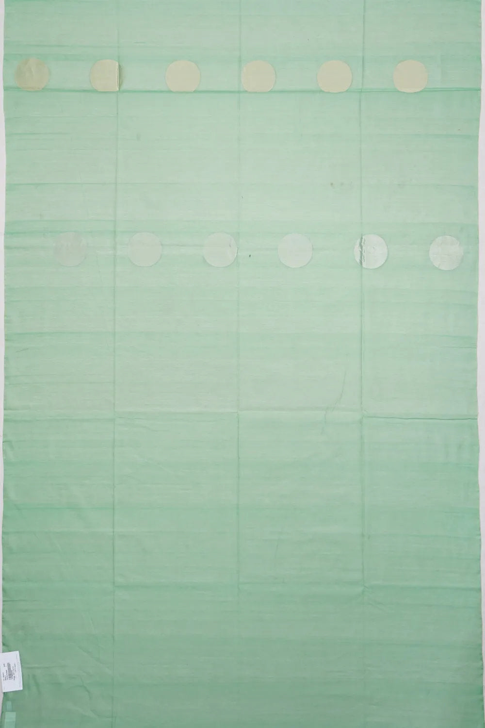 Embrace a sophisticated allure with this Coimbatore Silk Saree in a serene pastel green, a splendid homage to heritage elegance Its body is adorned with exquisite gold, silver, and antique zari polka dot buttas, offering a refined charm that catches the light with every movement