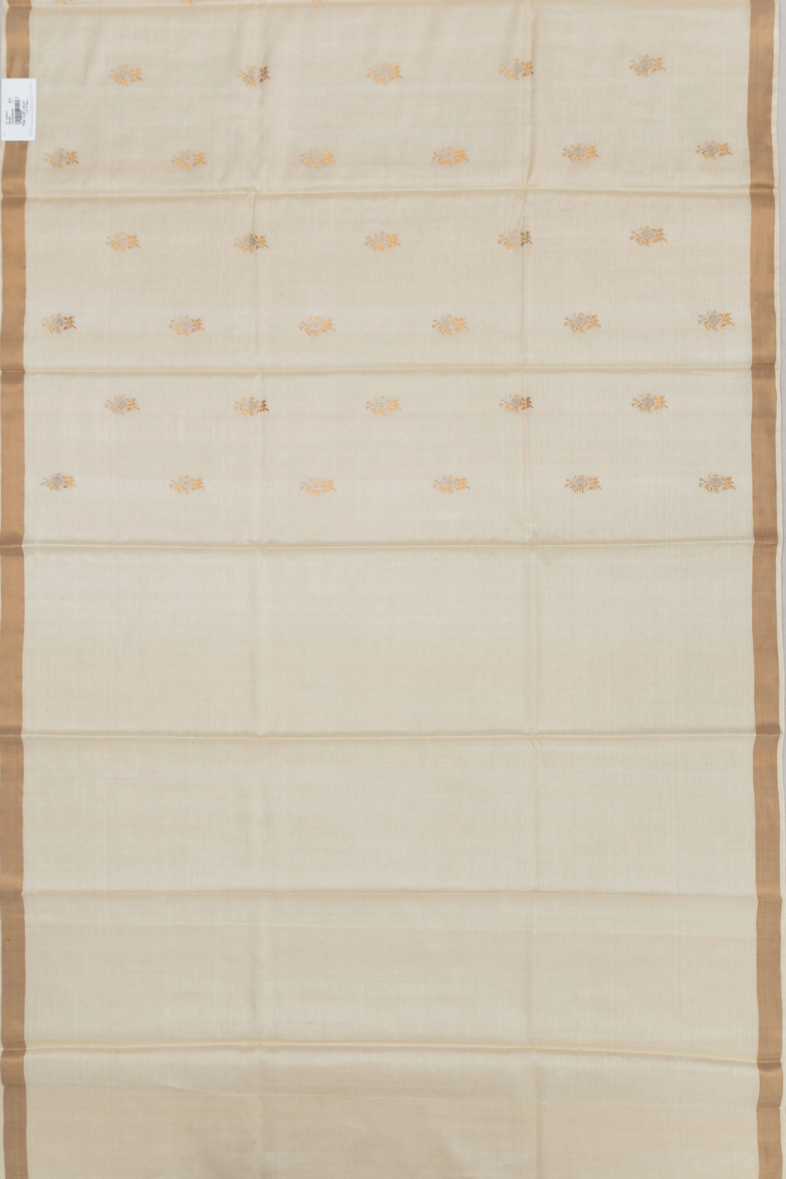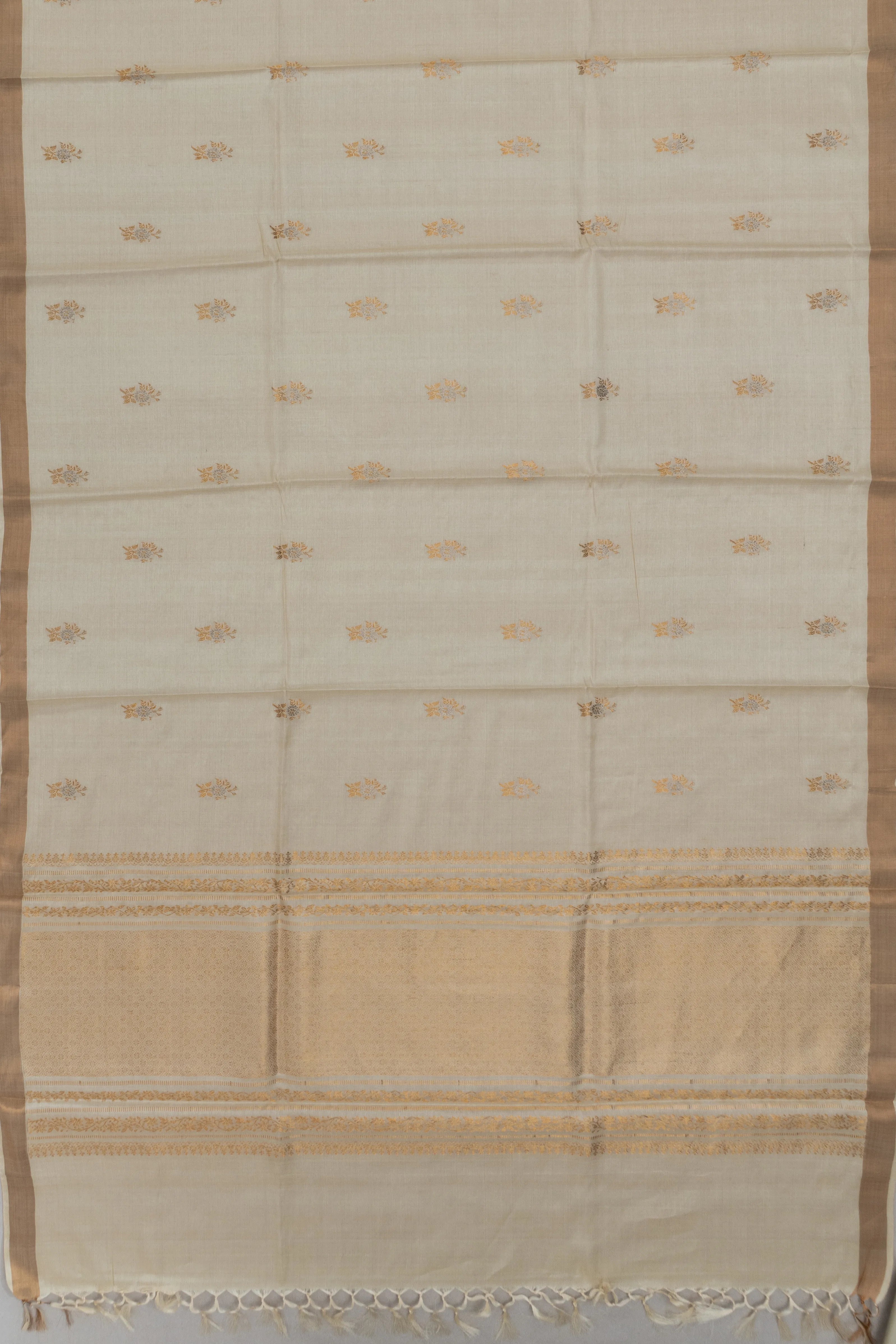 The saree features a subtle self gold zari kaddi small border, adding a touch of classic refinement