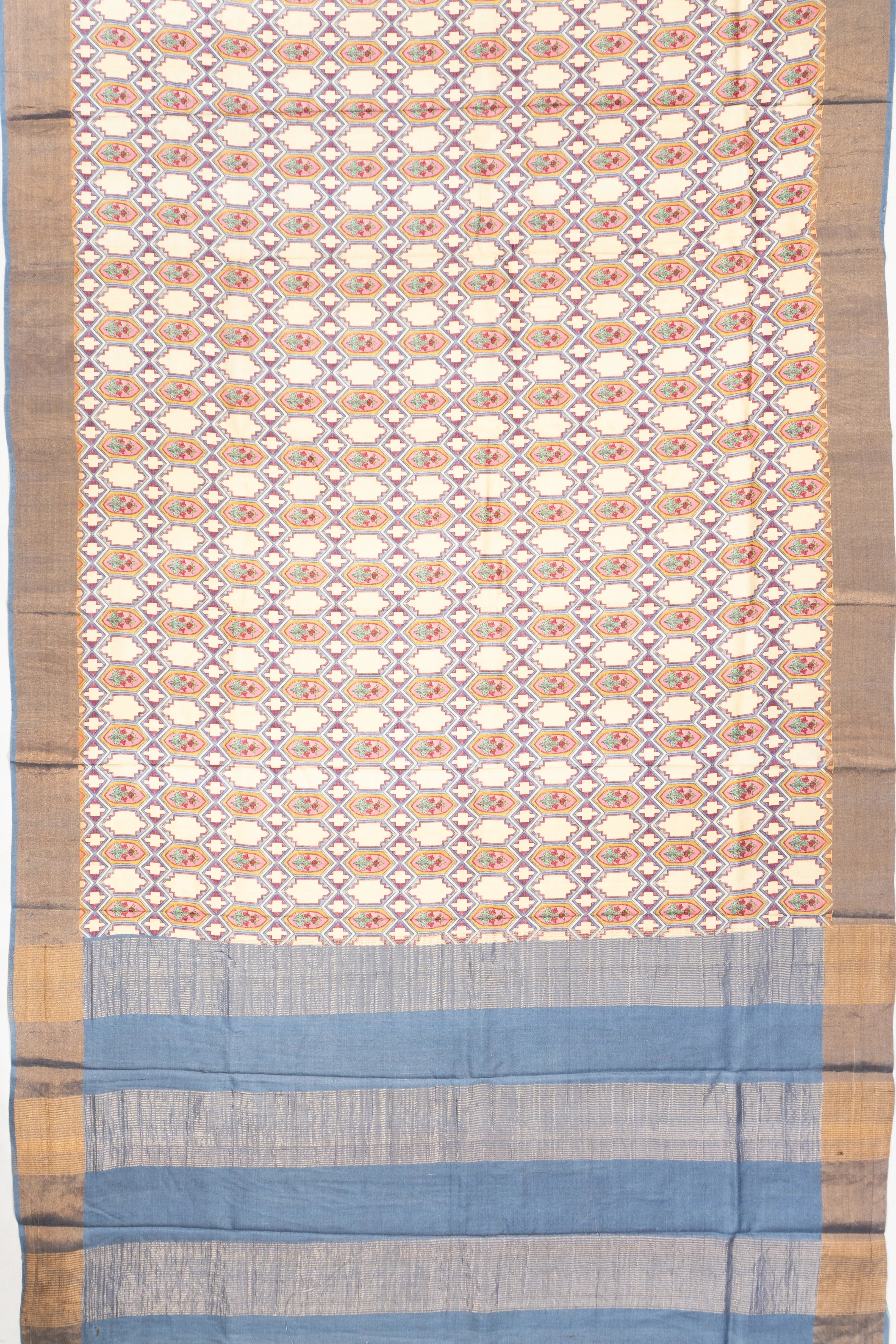 Embrace the allure of tradition with this Tussar Floral Printed Off White Saree, a graceful embodiment of heritage and elegance The saree's body is adorned with delicate floral prints, offering a serene charm that captures the essence of timeless beauty