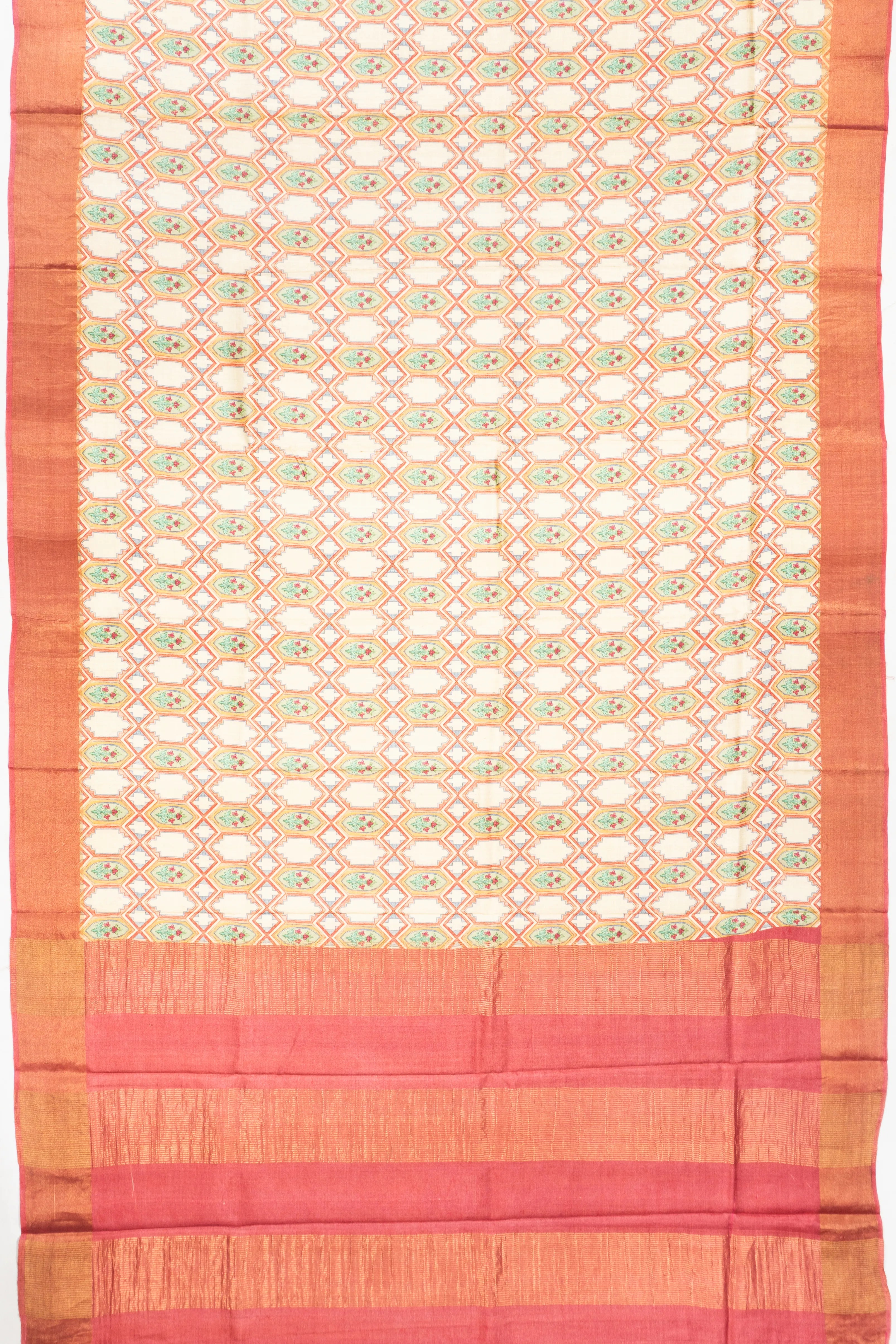 The rich heritage of Tussar silk adds a lustrous charm that speaks to the elegant craftsmanship behind every weave