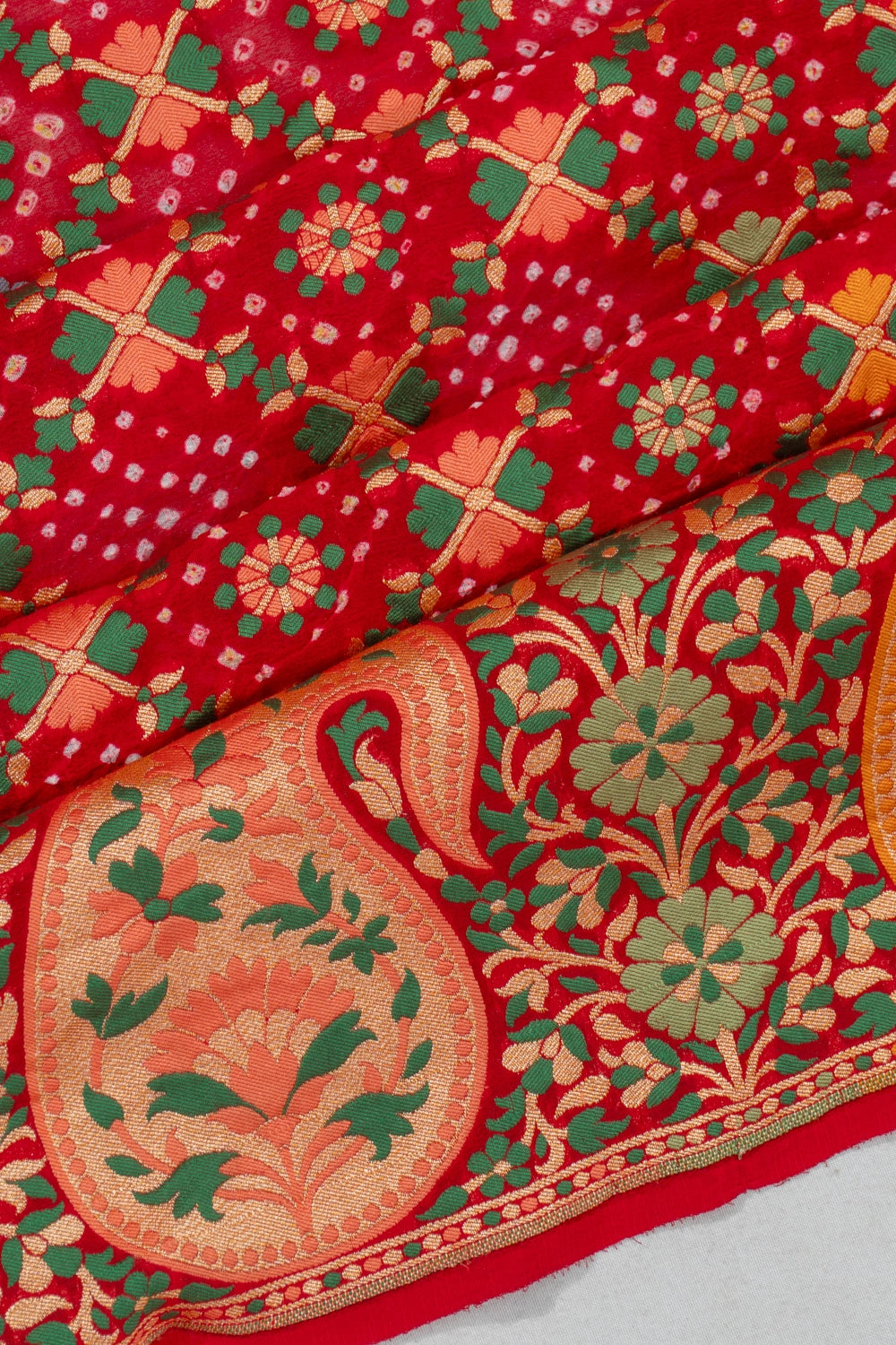 The body of the saree showcases the intricate bandhani technique, a timeless art form that lends an aura of grace and sophistication to your attire