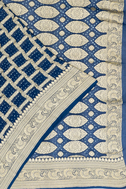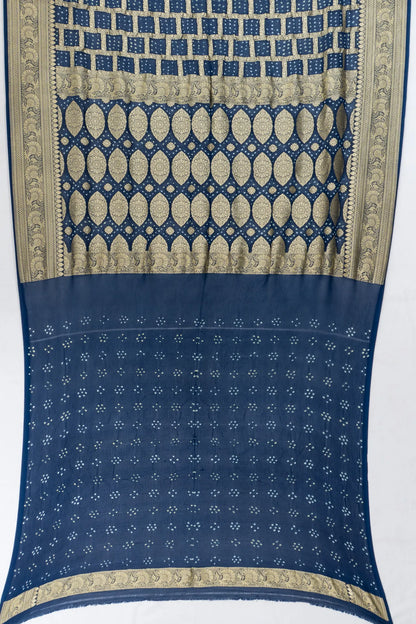 Banarasi Georgette Checks And Bandhani Dark Blue Saree