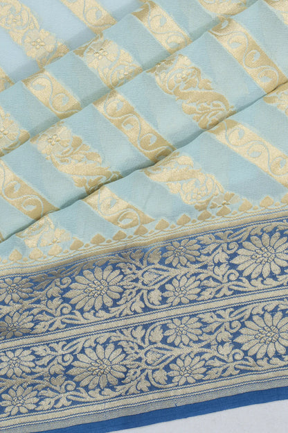 Banarasi Georgette Diagonal Lines Pastel Blue Saree