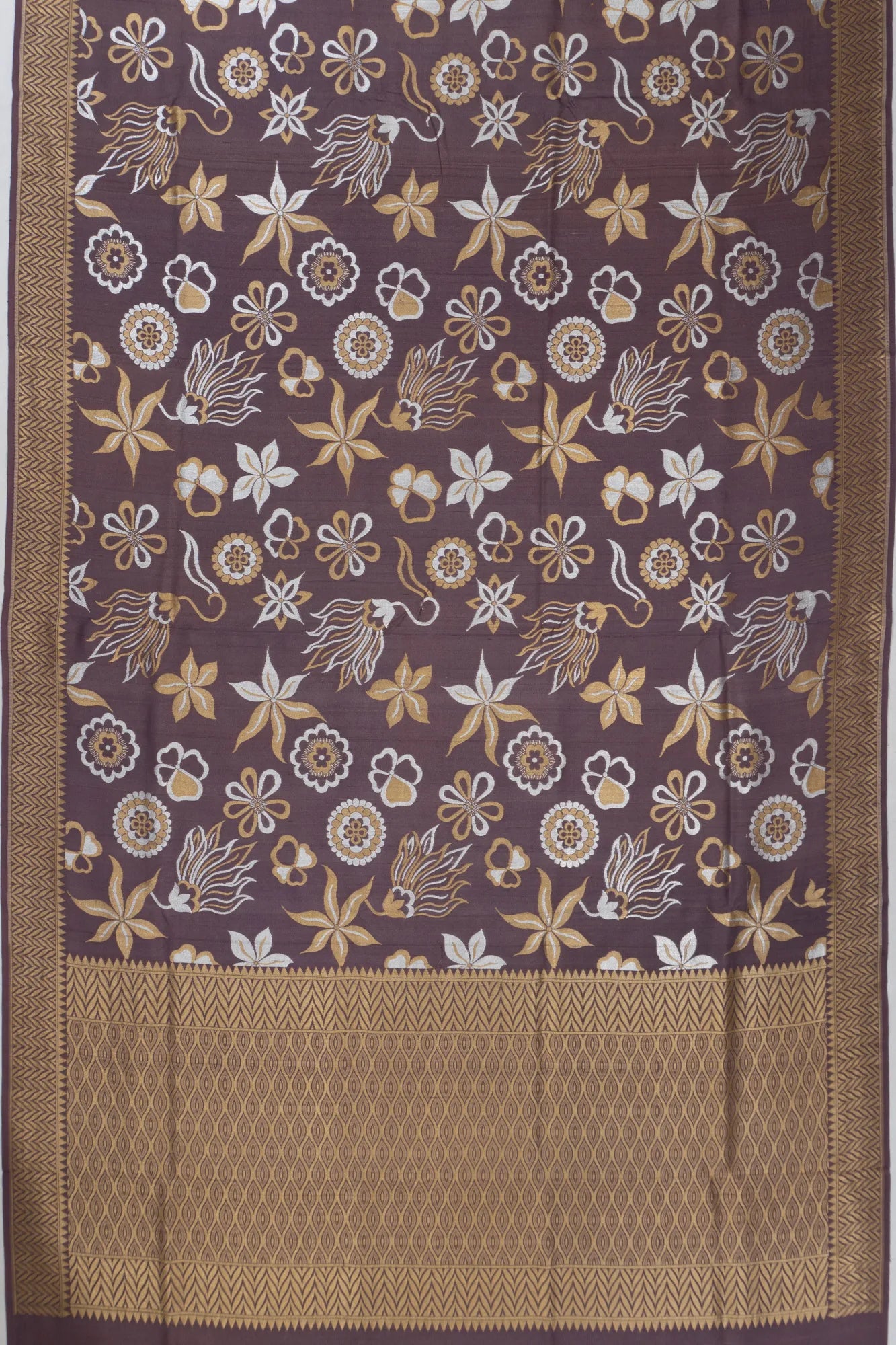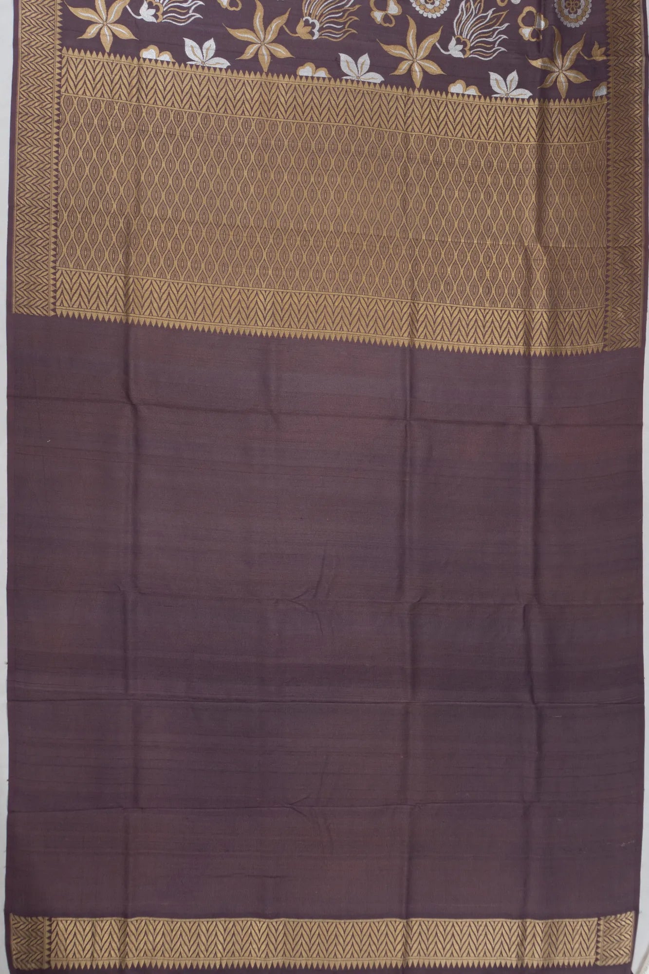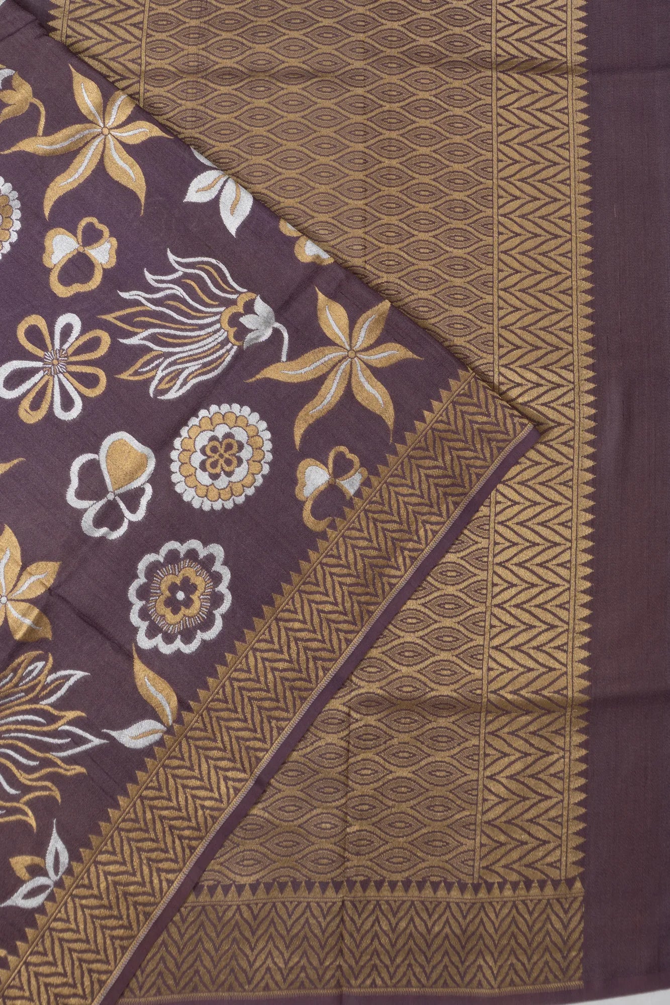 The coordinated pallu, also in purple, is beautifully woven with gold zari brocade, adding a touch of opulence to your ensemble